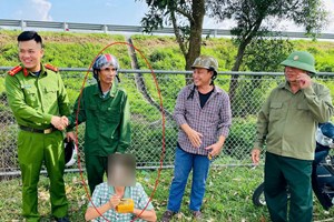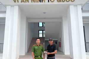 Thượng tá Ngô Thị Mai Lan, Giám đốc Bệnh viện CATP Hải Phòng tặng quà cho bà con Nhân dân xã Gia Lộc