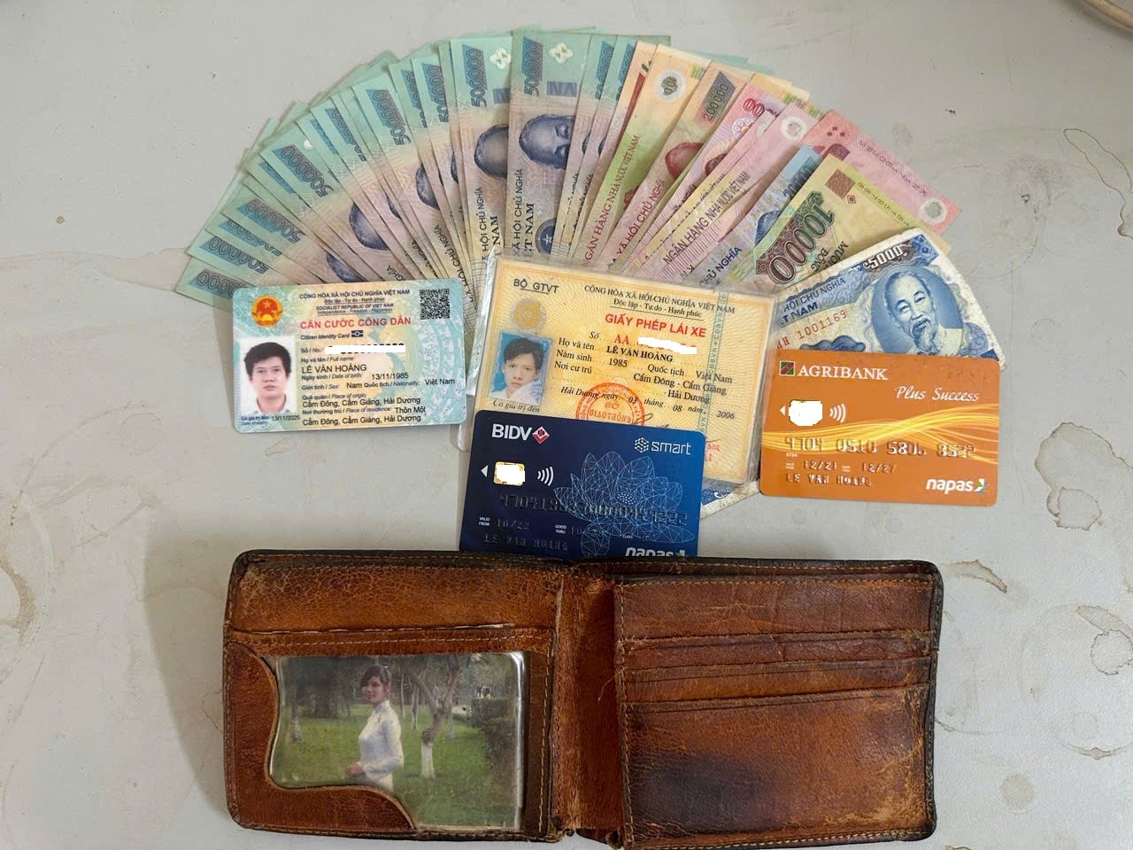 Khoảng 18h15’ ngày 03/7/2025, trên đường đi từ trụ sở Cơ quan 106 Nguyễn Lương Bằng (phường Thành Đông, TP Hải Phòng) về nhà chị gái trên tuyến đường Nguyễn Văn Linh (Phường Lê Thanh Nghị, TP Hải Phòng) Trung tá Nguyễn Hữu Dịu, phó Đội trưởng Đội 3 - Phòng Cảnh sát quản lý hành chính về trật tự xã hội CATP Hải Phòng nhặt được chiếc ví cũ nằm ở rìa đường, không có ai xung quanh. Kiểm tra bên trong, Trung tá Nguyễn Hữu Dịu thấy có một số giấy tờ tùy thân và tiền mặt, xác định chủ nhân là anh Lê Văn Hoàng, sinh năm 1985, hộ khẩu thường trú tại Cẩm Đông, Cẩm Giàng, Hải Dương, gồm 01 Giấy phép lái xe, 01 Căn cước công dân, 02 Thẻ ngân hàng và 11.235.000 đồng tiền mặt