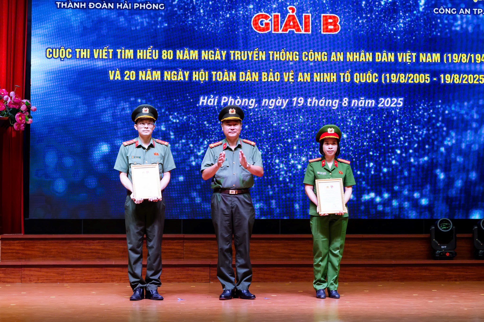 Chiều 19/8/2025, Thành đoàn Hải Phòng phối hợp cùng Công an thành phố tổ chức Chương trình “Tiếp nối truyền thống - Vững bước tương lai”. Tham dự chương trình có các đồng chí: Nguyễn Đức Tuấn, Uỷ viên Ban Thường vụ Thành uỷ, Phó Chủ tịch Thường trực Uỷ ban MTTQ Việt Nam thành phố; Nguyễn Thị Thuỷ, Phó Chủ tịch Uỷ ban MTTQ Việt Nam thành phố, Bí thư Thành đoàn; Đại tá Phạm Viết Dũng, Phó Giám đốc Công an thành phố.