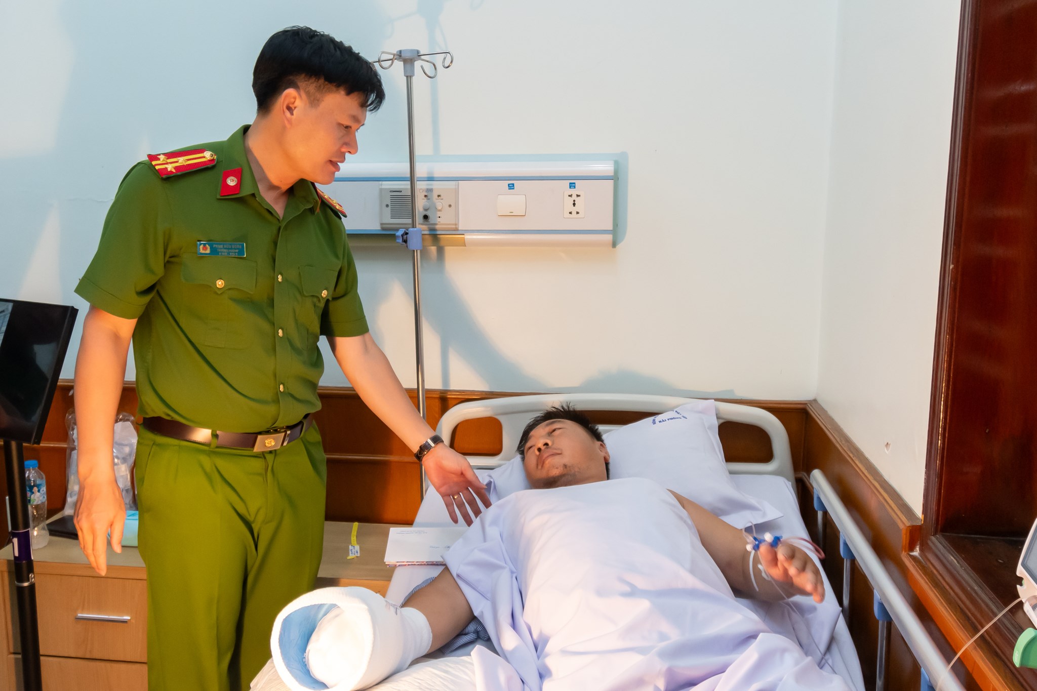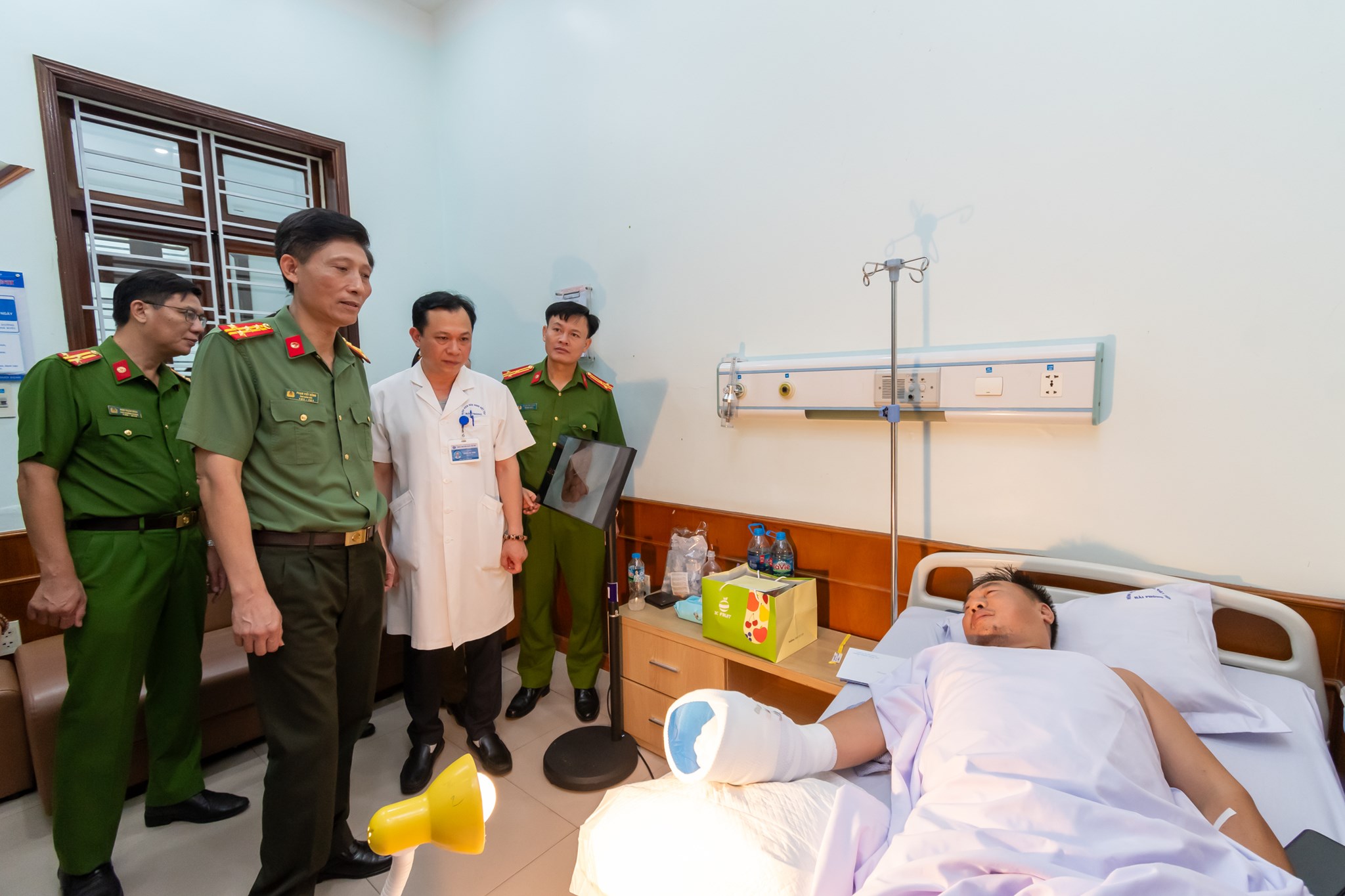Đại tá Phạm Viết Dũng, Phó Bí thư Đảng ủy, Phó Giám đốc CATP thăm hỏi, động viên Thiếu tá Phạm Văn Thắng
