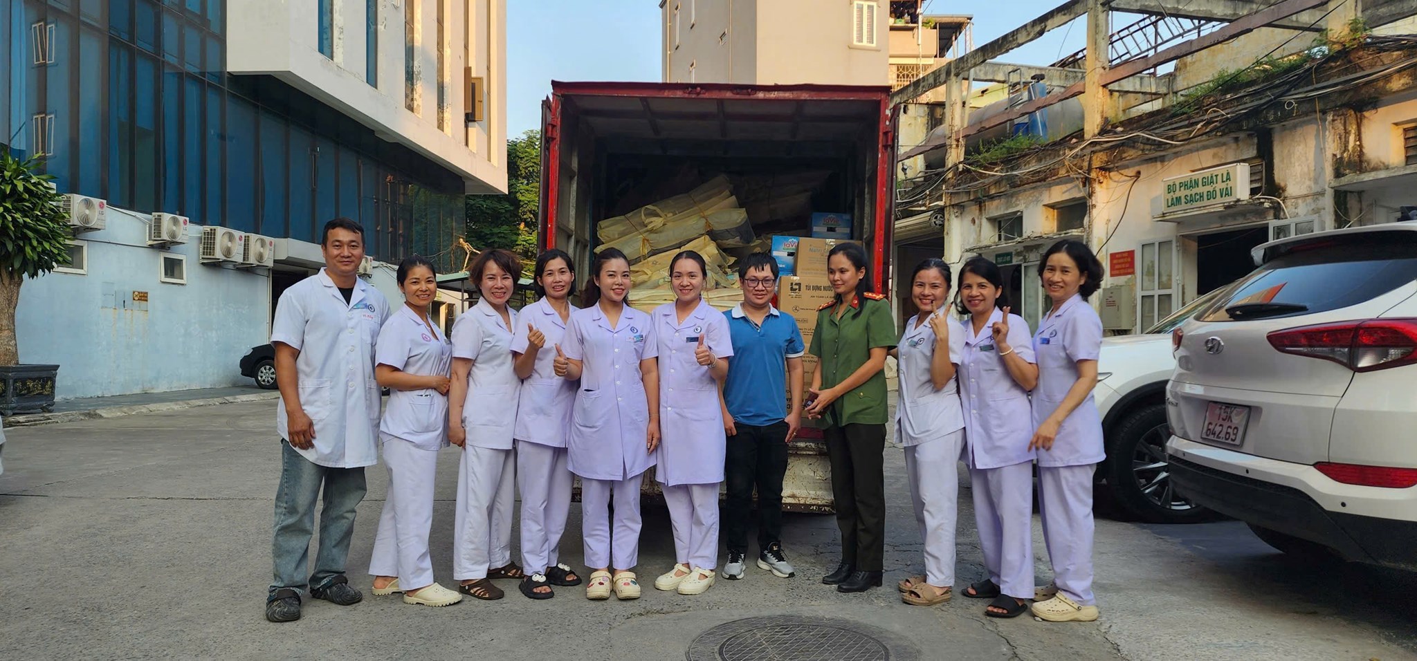 Đoàn đã trao và bàn giao cho chính quyền địa phương 2,3 tấn gạo (trong đó Đoàn Thanh niên, Hội Phụ nữ Phòng Tham mưu trao tặng 02 tấn gạo), 5 thùng thuốc thiết yếu, 200 thùng nước lọc (trong đó 50 thùng nước do Ban phụ nữ Công an thành phố Hải Phòng trao tặng), 60 bộ chăn chiếu, 50 suất gia vị cùng nhiều nhu yếu phẩm khác.