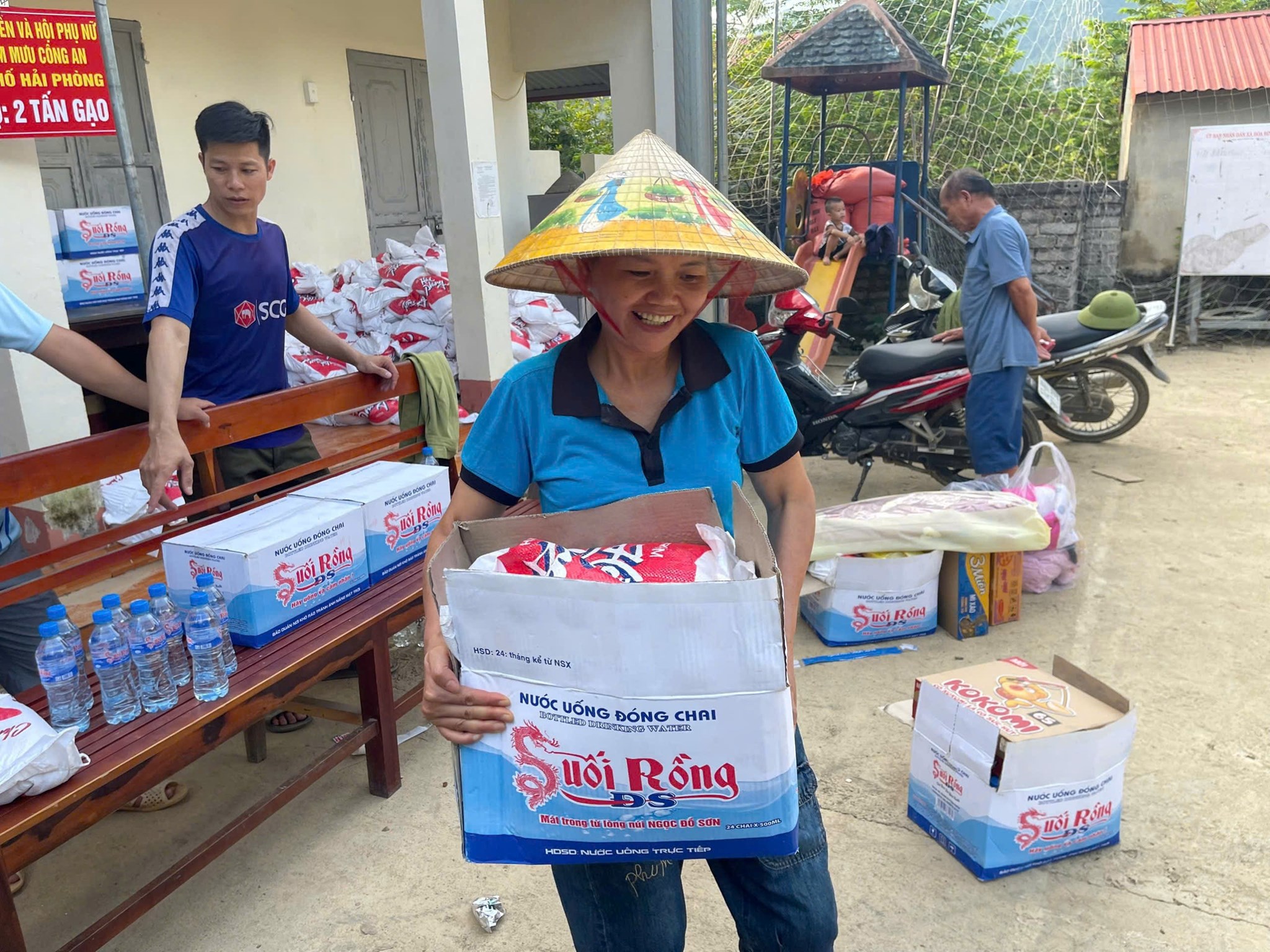 Nhân dân tới điểm tập kết nhận nhu yếu phẩm