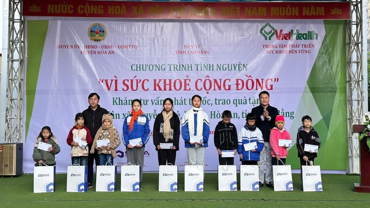 * Trước đó, vào ngày 28/12/2024, Trung tâm Phát triển Sức khoẻ Bền vững (VietHealth) phối hợp với huyện Hoà An tỉnh Cao Bằng, Công ty TNHH Dược phẩm Đa Phúc, Công ty Cổ phần Thực phẩm Việt Nam (VietFoods) và Công ty Cổ phần Công nghệ Sava Meta tổ chức hoạt động “Khám bệnh, tư vấn, phát thuốc và tặng quà cho nhân dân xã Nguyễn Huệ, huyện Hoà An, tỉnh Cao Bằng”. Xã Nguyễn Huệ thuộc khu vực III, là một trong số 11 xã vùng sâu vùng xa đặc biệt khó khăn trong tổng số 15 đơn vị hành chính của huyện Hòa An, tập trung nhiều đồng bào dân tộc thiểu số, có nhiều hộ gia đình đặc biệt khó khăn, hộ nghèo, gia đình chính sách ít điều kiện được chăm sóc sức khỏe.