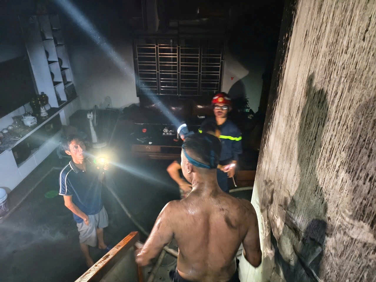 Thông tin ban đầu, ngôi nhà dân 2 tầng, trong nhà có người già và trẻ em bị mắc kẹt.