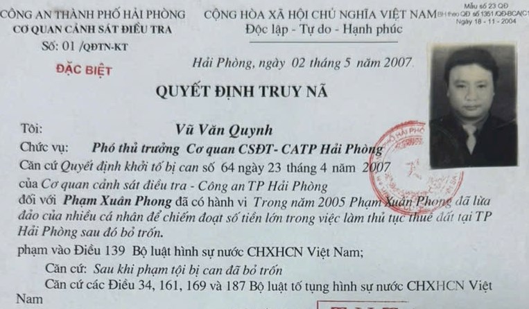 Lệnh truy nã đối tượng Phạm Xuân Phong