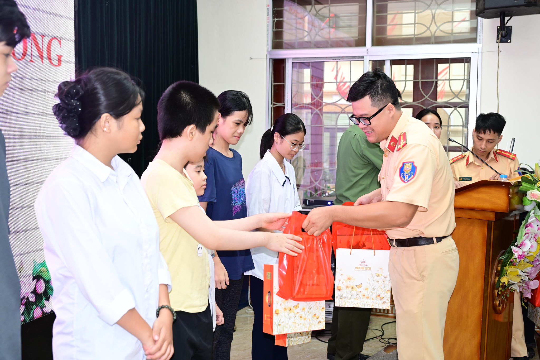Chi đoàn Đội Cảnh sát giao thông đường bộ số 1 - Đoàn cơ sở Phòng Cảnh sát giao thông tặng quà cho các học sinh