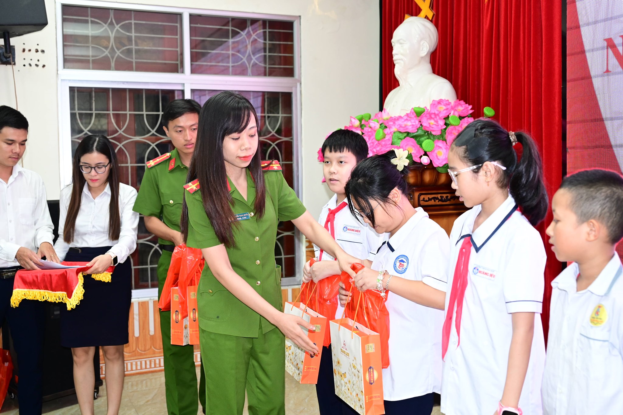 Đoàn cơ sở Phòng Cảnh sát hình sự trao quà cho các học sinh