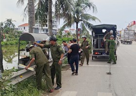 Công an xã Hợp Tiến cùng các lực lượng giải tỏa hành lang đường tỉnh 390, đường trục xã