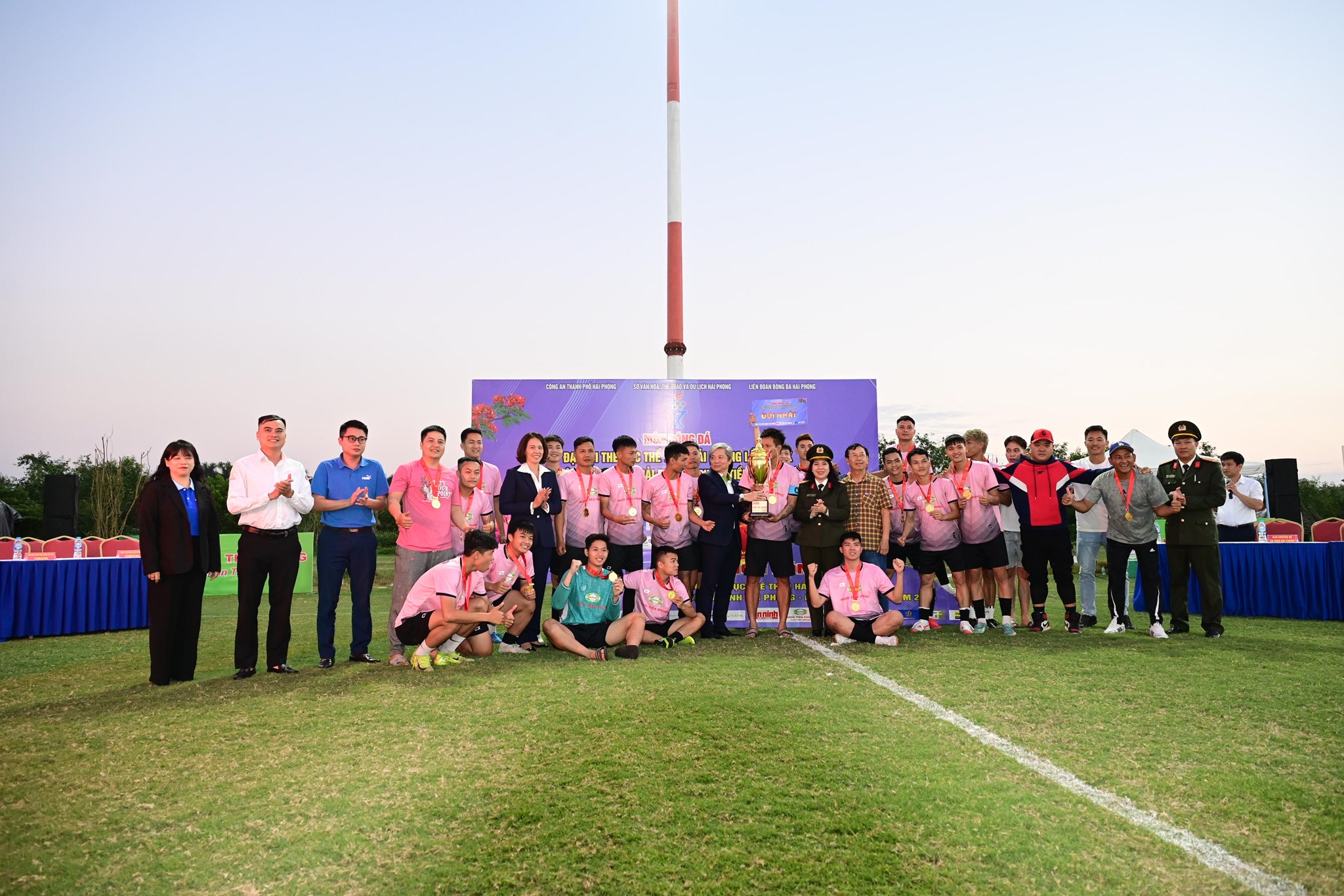 Ban Tổ chức trao Cúp vô địch cho Đội tuyển phường Lê Chân