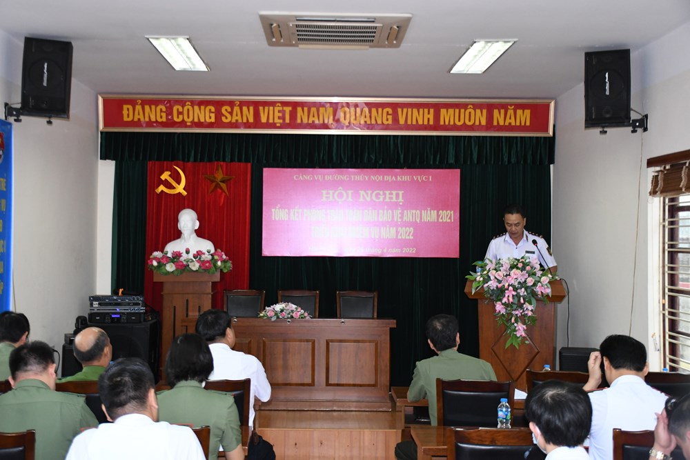 Sáng 26/4/2022, tại trụ sở Cảng vụ đường thủy nội địa khu vực 1 đã diễn ra hội nghị tổng kết phong trào toàn dân bảo vệ an ninh Tổ quốc năm 2021, triển khai phương hướng, nhiệm vụ năm 2022. Dự hội nghị có lãnh đạo đại diện Phòng Xây dựng phong trào bảo vệ An ninh Tổ quốc, Phòng An ninh Kinh tế (CATP Hải Phòng), Công an quận Ngô Quyền cùng toàn thể viên chức, người lao động Cảng vụ đường thủy nội địa khu vực 1.