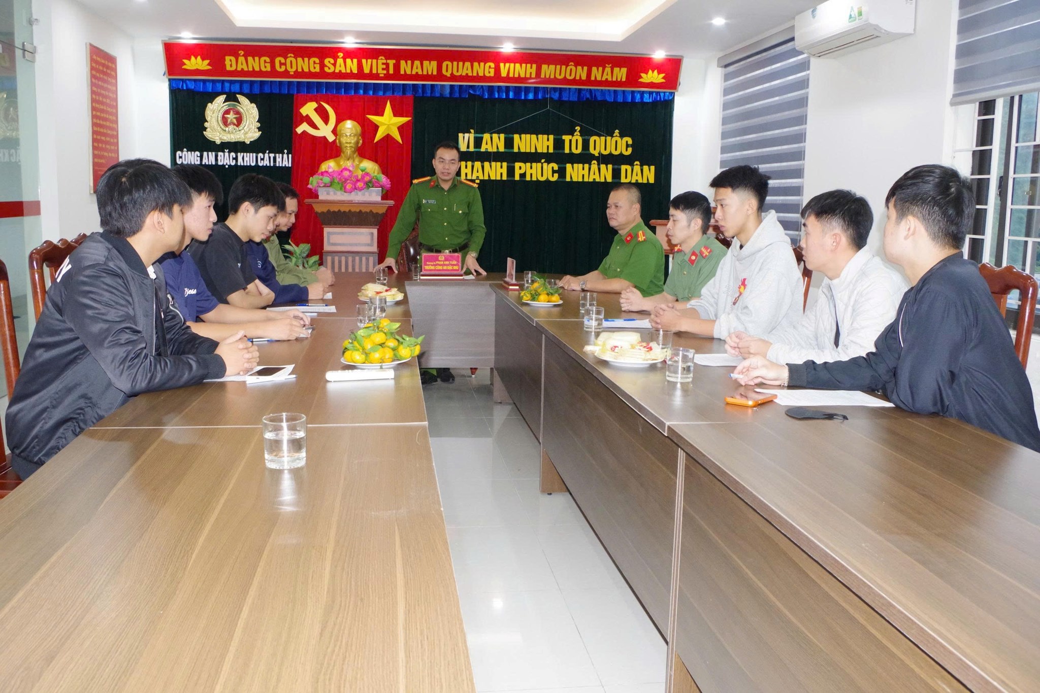 Phát biểu tại buổi gặp mặt, Thượng tá Phạm Anh Tuấn – Trưởng Công an đặc khu Cát Hải ghi nhận tinh thần xung kích, ý thức trách nhiệm của các công dân trẻ; đồng thời nhấn mạnh, những người tham gia nghĩa vụ trong lực lượng CAND cần có bản lĩnh chính trị vững vàng, lối sống lành mạnh, chấp hành nghiêm pháp luật và tuyệt đối tránh xa các tệ nạn xã hội.