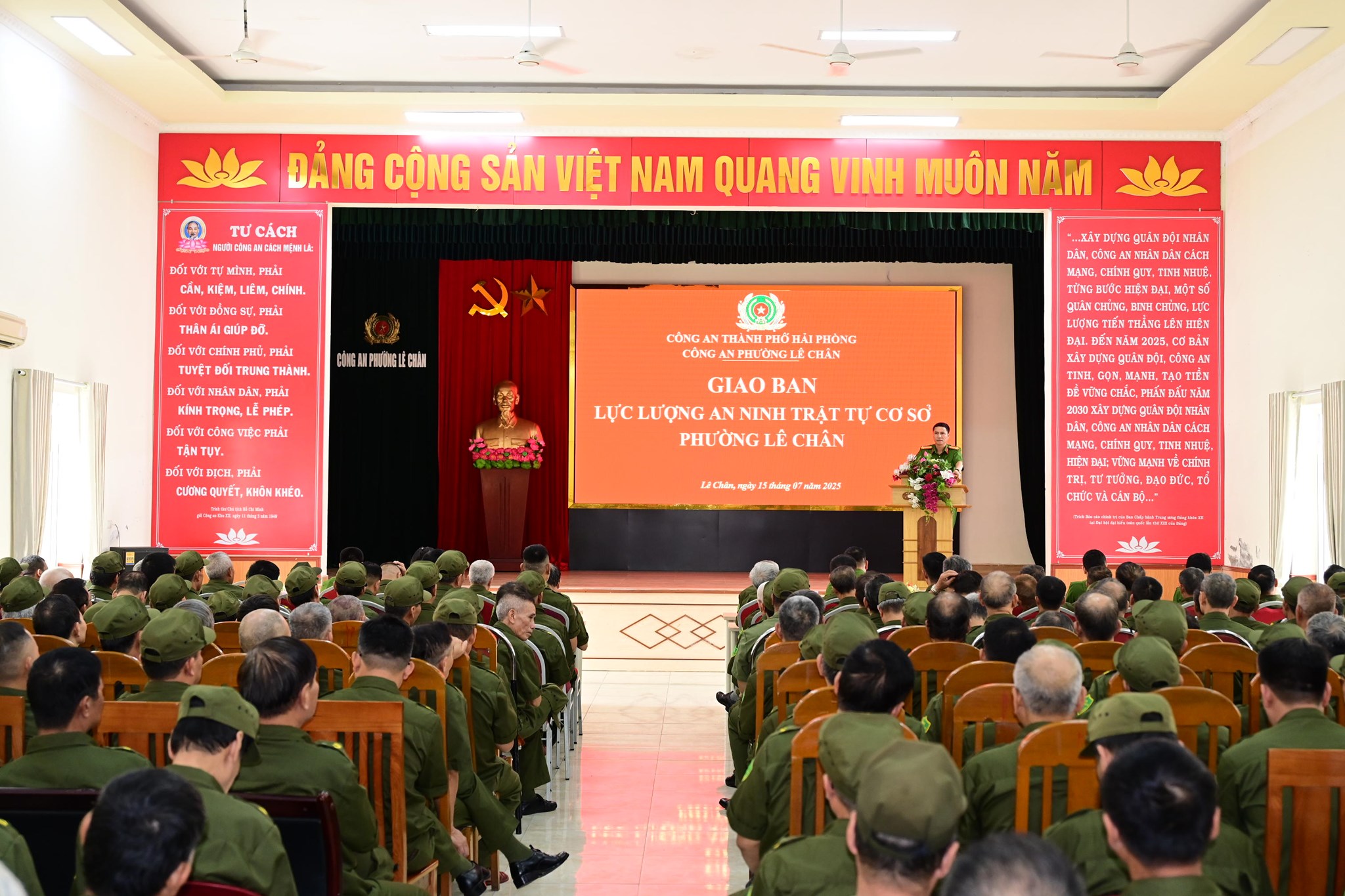 Chiều 15/7/2025, Công an phường Lê Chân tổ chức hội nghị giao ban lực lượng tham gia bảo vệ an ninh trật tự (ANTT) cơ sở. Trung tá Nguyễn Trung Kiên - Trưởng CAP dự, chỉ đạo hội nghị. Cùng dự có các đồng chí Phó Trưởng Công an phường và trên 300 đồng chí tham gia lực lượng bảo vệ ANTT cơ sở trên địa bàn phường.