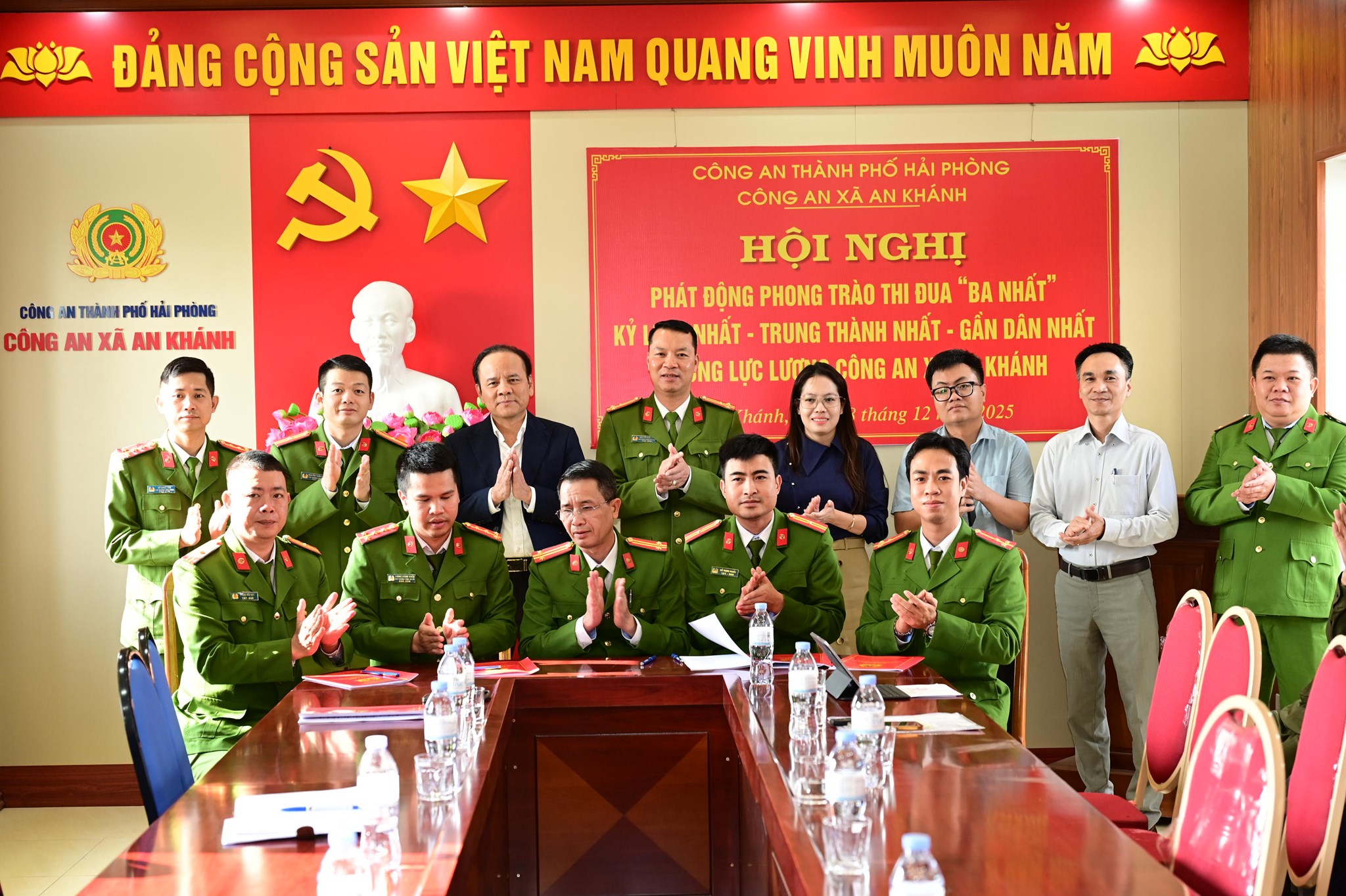 Chiều 8/12/2025, Công an xã An Khánh (TP Hải Phòng) tổ chức Lễ phát động phong trào thi đua “Ba nhất: Kỷ luật nhất - Trung thành nhất - Gần dân nhất” và công bố quyết định thành lập Chi hội Cựu CAND xã nhiệm kỳ 2023 - 2025. Dự lễ phát động có các đồng chí :Nguyễn Đình Vinh- Bí thư Đảng uỷ, Chủ tịch HĐND xã; Nguyễn Thị Phương Mai, Trưởng Ban xây dựng Đảng xã; Thượng tá Nguyễn Đức Yên- Trưởng Công an xã; đại diện Thường trực Đảng uỷ xã cùng toàn thể cán bộ, chiến sĩ và lực lượng tham gia bảo vệ ANTT cơ sở.