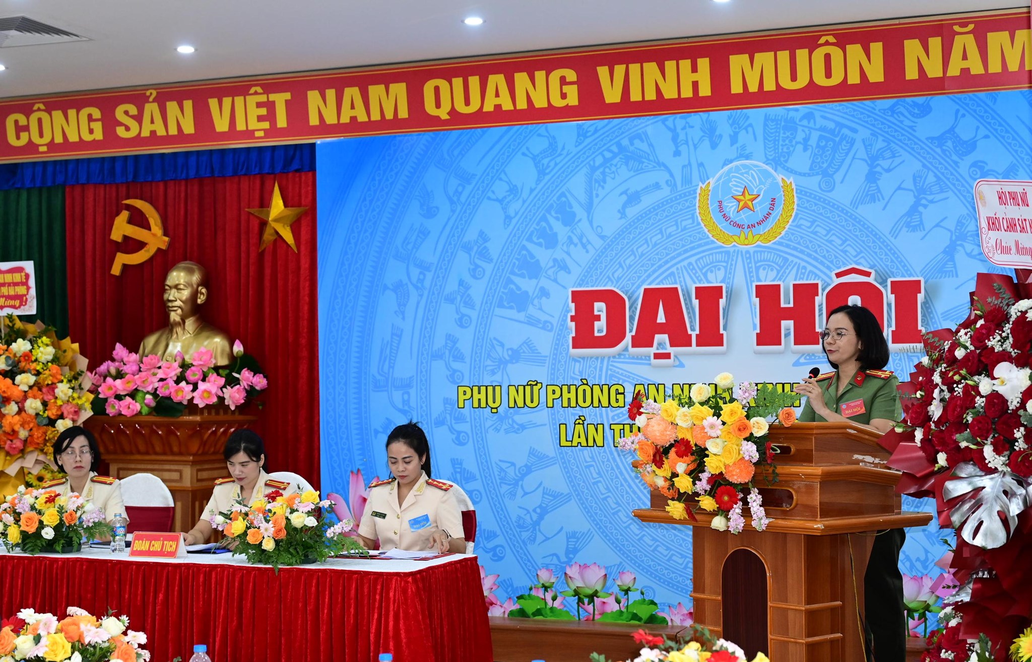 Thượng tá Nguyễn Thị Linh Chi, Trưởng Ban Phụ nữ CATP phát biểu tại Đại hội.