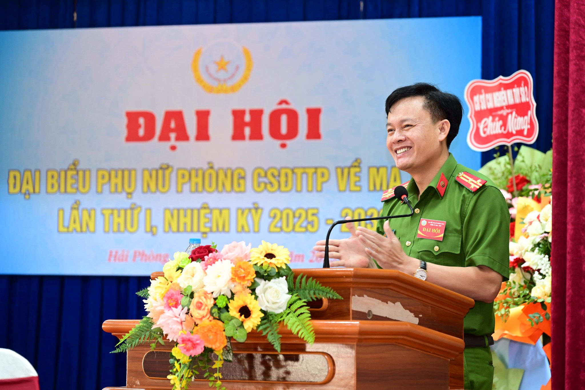 Phát biểu tại Đại hội, Thượng tá Phạm Hữu Đoàn, Bí Thư Đảng uỷ, Trưởng Phòng Cảnh sát điều tra tội phạm về ma tuý biểu dương những kết quả mà phụ nữ đơn vị đã đạt được trong thời gian qua, đặc biệt là tinh thần đoàn kết, sáng tạo, hoàn thành tốt các nhiệm vụ chuyên môn. Đồng chí tin tưởng rằng, trong nhiệm kỳ mới, cán bộ nữ Phòng Cảnh sát điều tra tội phạm về ma tuý sẽ tiếp tục phát huy truyền thống, giữ vững phẩm chất nữ chiến sĩ CAND, tích cực hưởng ứng các phong trào thi đua, xây dựng hình ảnh nữ chiến sĩ Công an Hải Phòng bản lĩnh, nhân văn, vì nhân dân phục vụ. Đồng thời cùng Đảng bộ đơn vị thực hiện hiệu quả Nghị quyết của Đảng bộ Phòng Cảnh sát điều tra tội phạm về ma tuý đề ra trong nhiệm kỳ 2025 – 2030, mỗi hội viên là một tuyên truyền viên phòng chống ma tuý, thực hiện công trình phần việc số hoá hồ sơ học viên, cán bộ chiến sỹ....