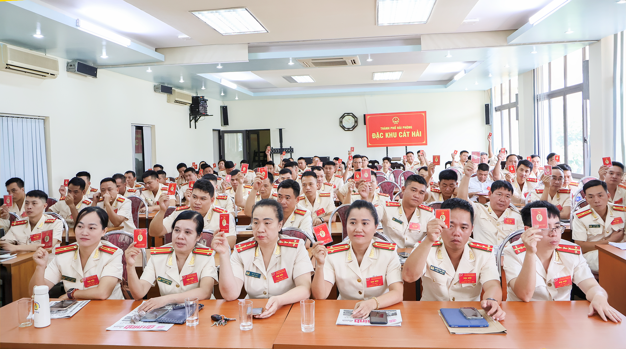 Đồng thời, Công an đặc khu Cát Hải thường xuyên tổ chức quán triệt thực hiện nghiêm túc những nội dung cơ bản trong công tác xây dựng và chỉnh đốn đảng; ngăn chặn, đẩy lùi sự suy thoái về tư tưởng chính trị, đạo đức, lối sống, những biểu hiện “tự diễn biến”, “tự chuyển hóa” trong nội bộ. Từ đó nâng cao sức mạnh chiến đấu và vai trò lãnh đạo của tổ chức đảng trên các mặt công tác Công an, xây dựng đảng bộ trong sạch vững mạnh, không có chi bộ đảng yếu kém.