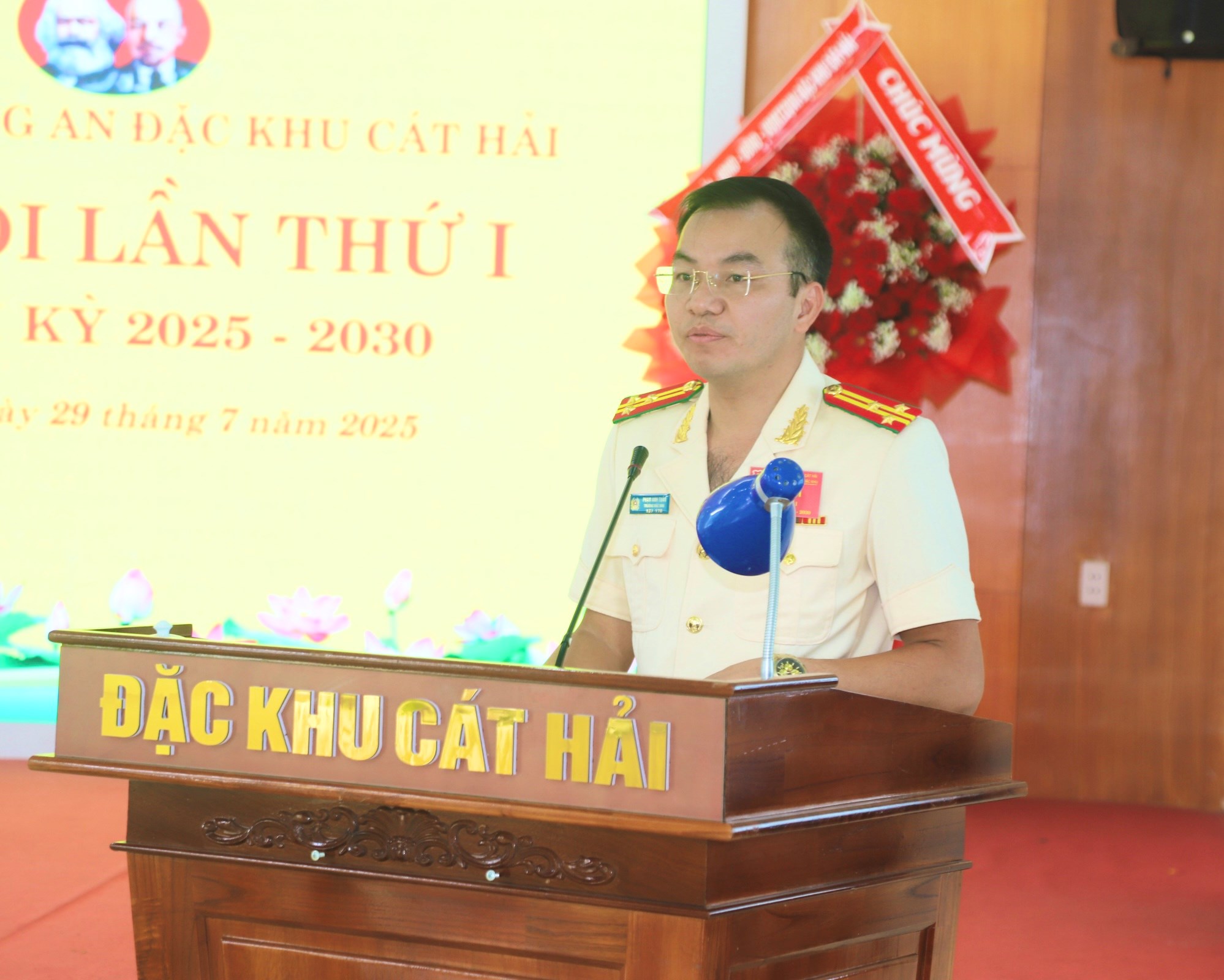 Tại Đại hội đã công bố Quyết định của Ban Thường vụ Đảng ủy đặc khu Cát Hải về việc chỉ định Ban Chấp hành Đảng bộ, Ban Thường vụ, Bí thư, Phó Bí thư Đảng ủy Công an đặc khu Cát Hải, nhiệm kỳ 2025 - 2030. Trong đó, Thượng tá Phạm Anh Tuấn – Bí thư Đảng ủy, Trưởng Công an đặc khu Cát Hải.