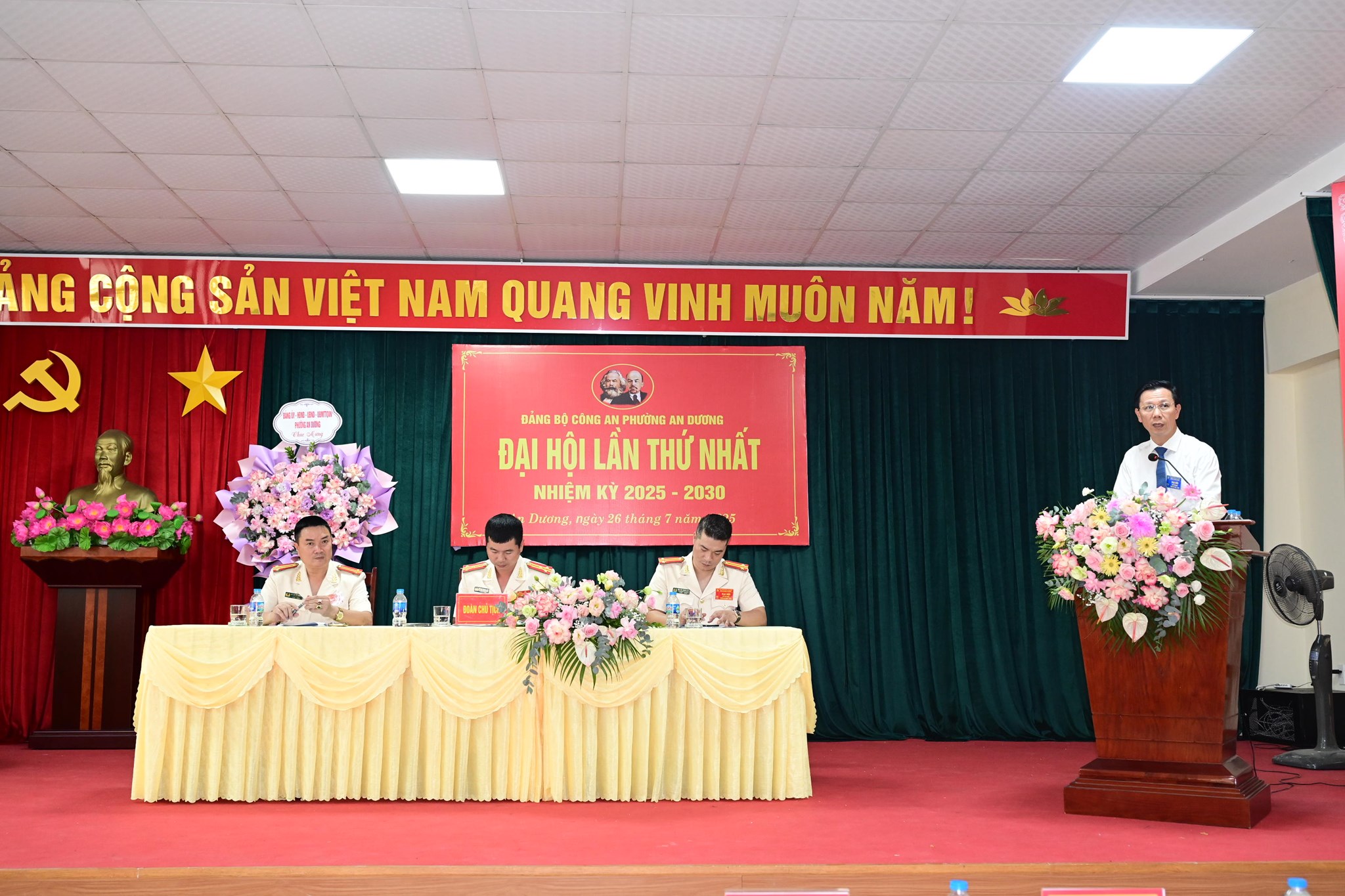 Phát biểu chỉ đạo tại Đại hội, đồng chí Bùi Tiến Phong – Phó Bí thư Đảng ủy, Chủ tịch UBND phường An Dương ghi nhận và biểu dương những kết quả đạt được của lực lượng Công an phường thời gian qua. Đồng chí Chủ tịch UBND phường cũng đề nghị thời gian tới, đơn vị cần tiếp tục thực hiện nghiêm các chỉ đạo của Bộ Công an, CATP, đoàn kết nội bộ, quyết tâm khắc phục mọi khó khăn, phấn đấu hoàn thành xuất sắc mọi nhiệm vụ được giao. Góp phần phát triển KTXH của địa phương.