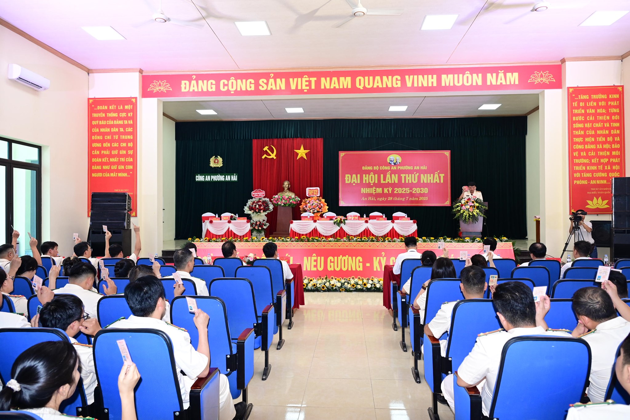 Chiều 28/7/2025, Đảng bộ Công an phường An Hải tổ chức Đại hội lần thứ Nhất, nhiệm kỳ 2025-2030. Đây là sự kiện chính trị có ý nghĩa quan trọng, đánh dấu bước phát triển mới của Đảng bộ Công an phường sau khi được thành lập trên cơ sở kiện toàn tổ chức, sắp xếp bộ máy chính quyền địa phương hai cấp. Tới dự đại hội có các đồng chí: Chu Đức Anh - Bí thư Đảng uỷ, Chủ tịch HĐND phường; Phạm Hải Nam - Phó Bí thư thường trực Đảng uỷ; Lương Thế Quý - Phó Bí thư Đảng uỷ, Chủ tịch UBND phường… cùng 103 Đảng viên của Đảng bộ Công an phường.