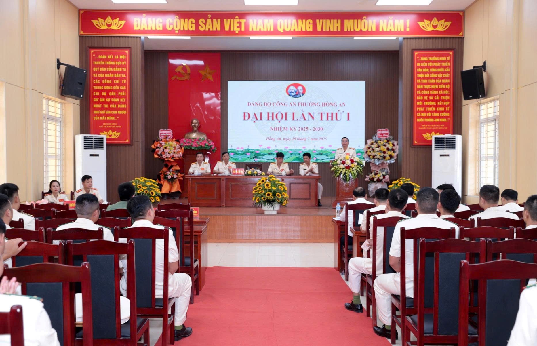 Sáng 29/7/2025, Đảng bộ Công an phường Hồng An tổ chức Đại hội lần thứ I, nhiệm kỳ 2025 – 2030. Các đồng chí: Đỗ Việt Hưng, Bí thư Đảng ủy, Chủ tịch HĐND phường Hồng An, Nguyễn Hữu Thanh, Chủ tịch UBND phường Hồng An dự và chỉ đạo đại hội.