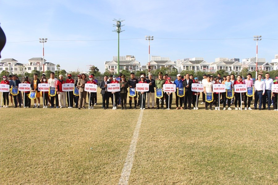 Dự lễ khai mạc có các đồng chí: Đan Đức Hiệp - nguyên Phó Chủ tịch Thường trực UBND TP, Chủ tịch Liên đoàn Bóng đá Hải Phòng; Phạm Thị Tô Trang - Phó Giám đốc Sở Văn hóa, Thể thao và Du lịch ; Thượng tá Nguyễn Thu Hồng - Trưởng Ban Chuyên đề An ninh Hải Phòng, Phó trưởng Ban Tổ chức giải cùng đại diện các ban, ngành, các nhà tài trợ và các đơn vị liên quan.
