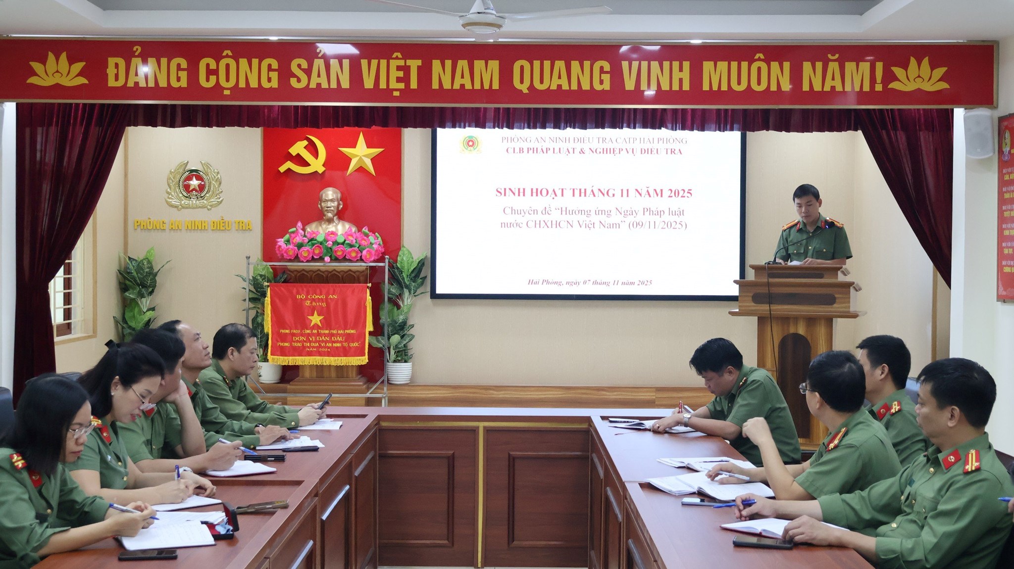Sáng ngày 07/11/2025, “Câu lạc bộ Pháp luật - Nghiệp vụ điều tra” Phòng An ninh điều tra tổ chức sinh hoạt định kỳ tháng 11 năm 2025 với nội dung tuyên truyền, phổ biến một số văn bản hướng dẫn của các Cơ quan tư pháp Trung ương, đồng thời hưởng ứng “Ngày pháp luật nước CHXHCN Việt Nam”.