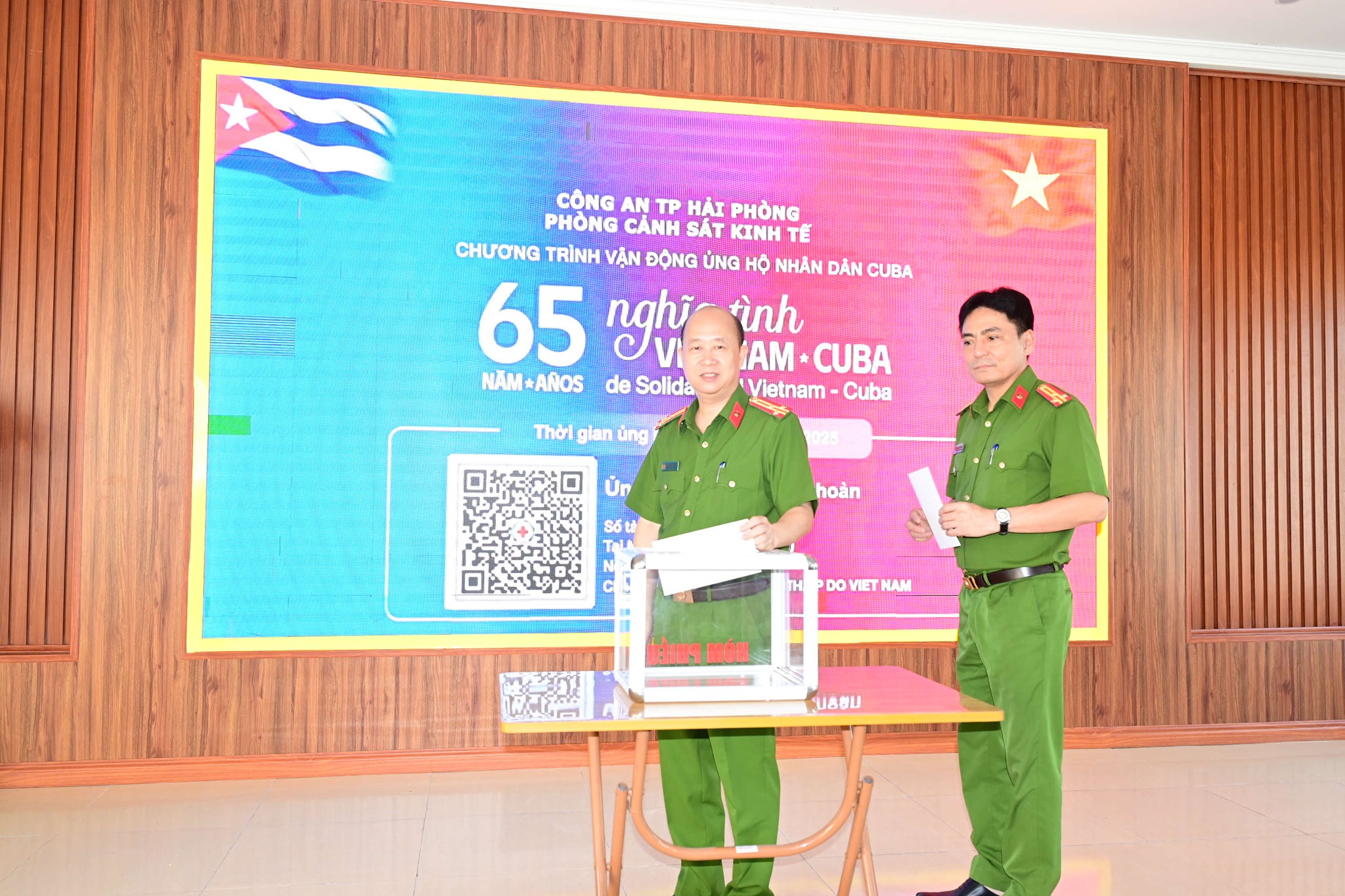 Theo đó, trong buổi chào cờ đơn vị đầu tháng 9 năm 2025, nhân dịp Kỷ niệm 65 năm ngày thiết lập quan hệ ngoại giao Việt Nam – Cuba, Thượng tá Ngô Duy Cương - Trưởng phòng Cảnh sát kinh tế đã phát động tới toàn thể lãnh đạo, chỉ huy, cán bộ chiến sỹ quyên góp ủng hộ Nhân dân Cuba. Hoạt động này vừa là sự sẻ chia vật chất, vừa là sự tiếp nối nghĩa tình sâu nặng giữa hai dân tộc. Toàn bộ số tiền do toàn thể lãnh đạo, chỉ huy, cán bộ chiến sỹ Phòng Cảnh sát kinh tế quyên góp sẽ được kiểm đếm và chuyển ngay đến Hội Chữ thập đỏ thành phố Hải Phòng để tập hợp, gửi tới nhân dân Cuba. Qua hoạt động này nhằm góp phần lan tỏa tinh thần đoàn kết quốc tế, bồi đắp thêm cho mối quan hệ hữu nghị đặc biệt Việt Nam – Cuba “mãi xanh tươi, đời đời bền vững”.
