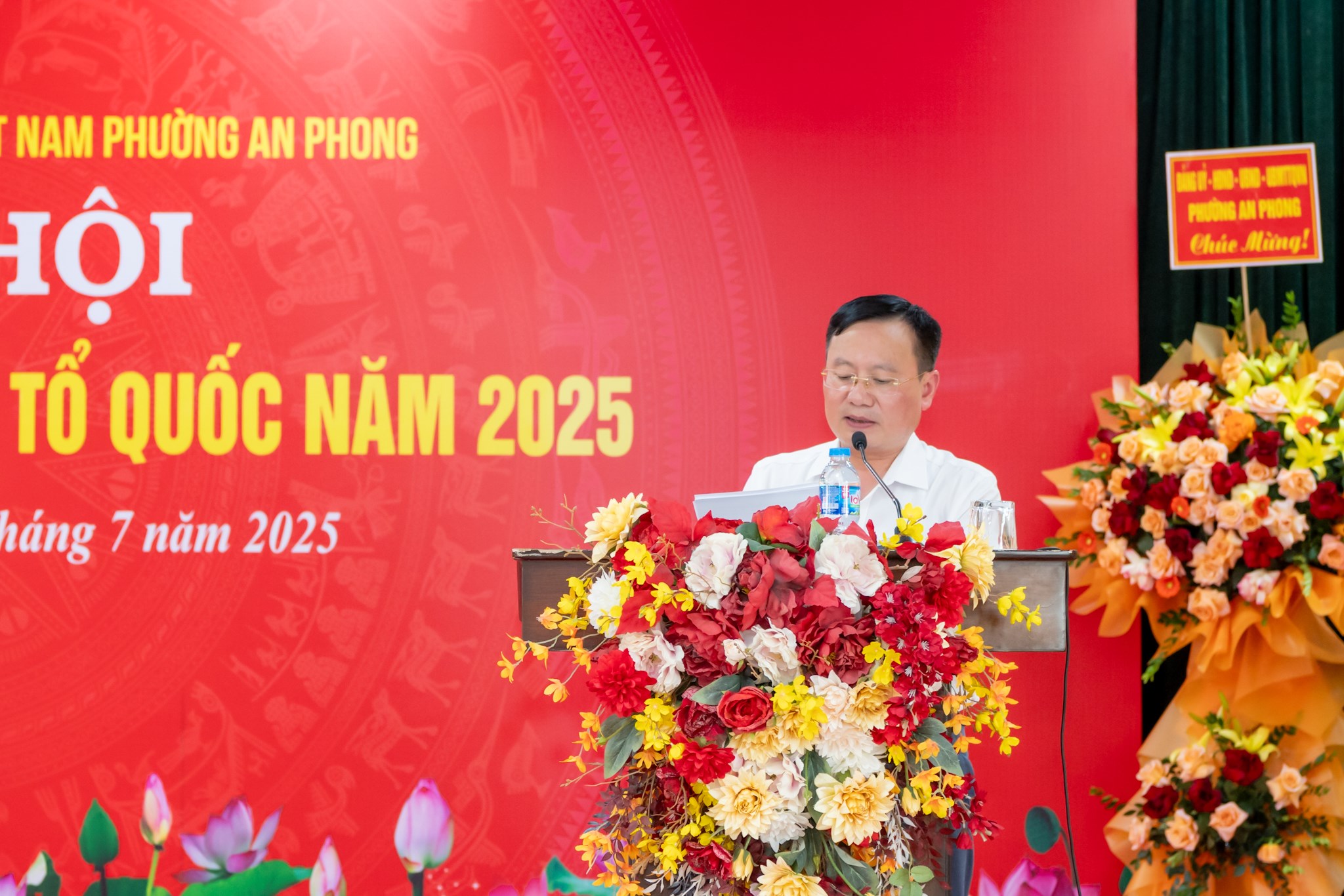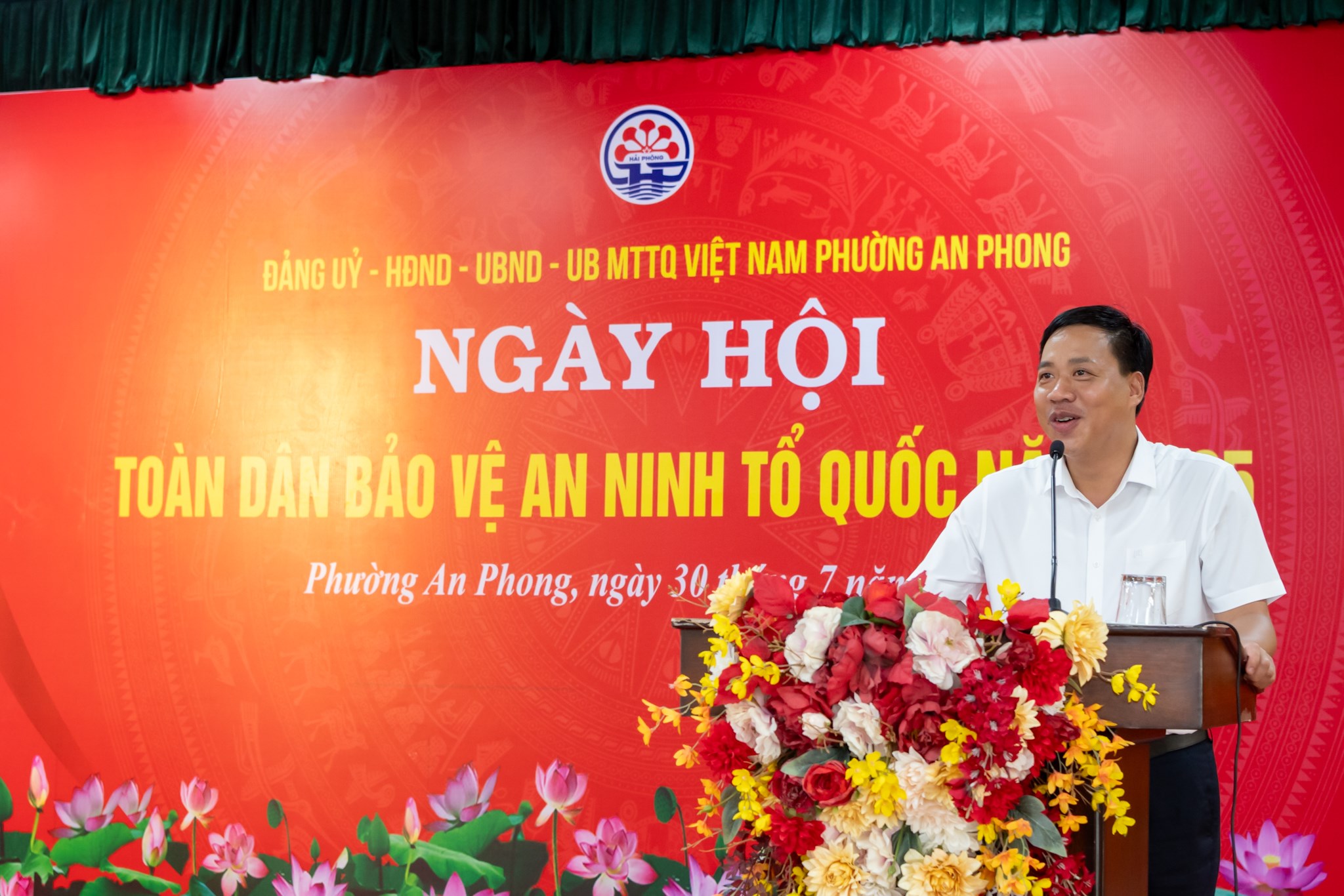 Chiều ngày 30/7/2025, UBND phường An Phong tổ chức Ngày hội toàn dân bảo vệ an ninh Tổ quốc. Đồng chí Lâm Văn Đạt - Phó Bí thư Đảng ủy, Chủ tịch UBND phường chủ trì ngày hội. Cùng dự có các đồng chí: Trần Văn Hải - Phó Chủ tịch thường trực UBND phường; Thượng tá Vũ Bá Chuẩn - Trưởng Công an phường, cùng đại diện các ban, ngành đoàn thể và đông đảo quần chúng nhân dân phường An Phong.