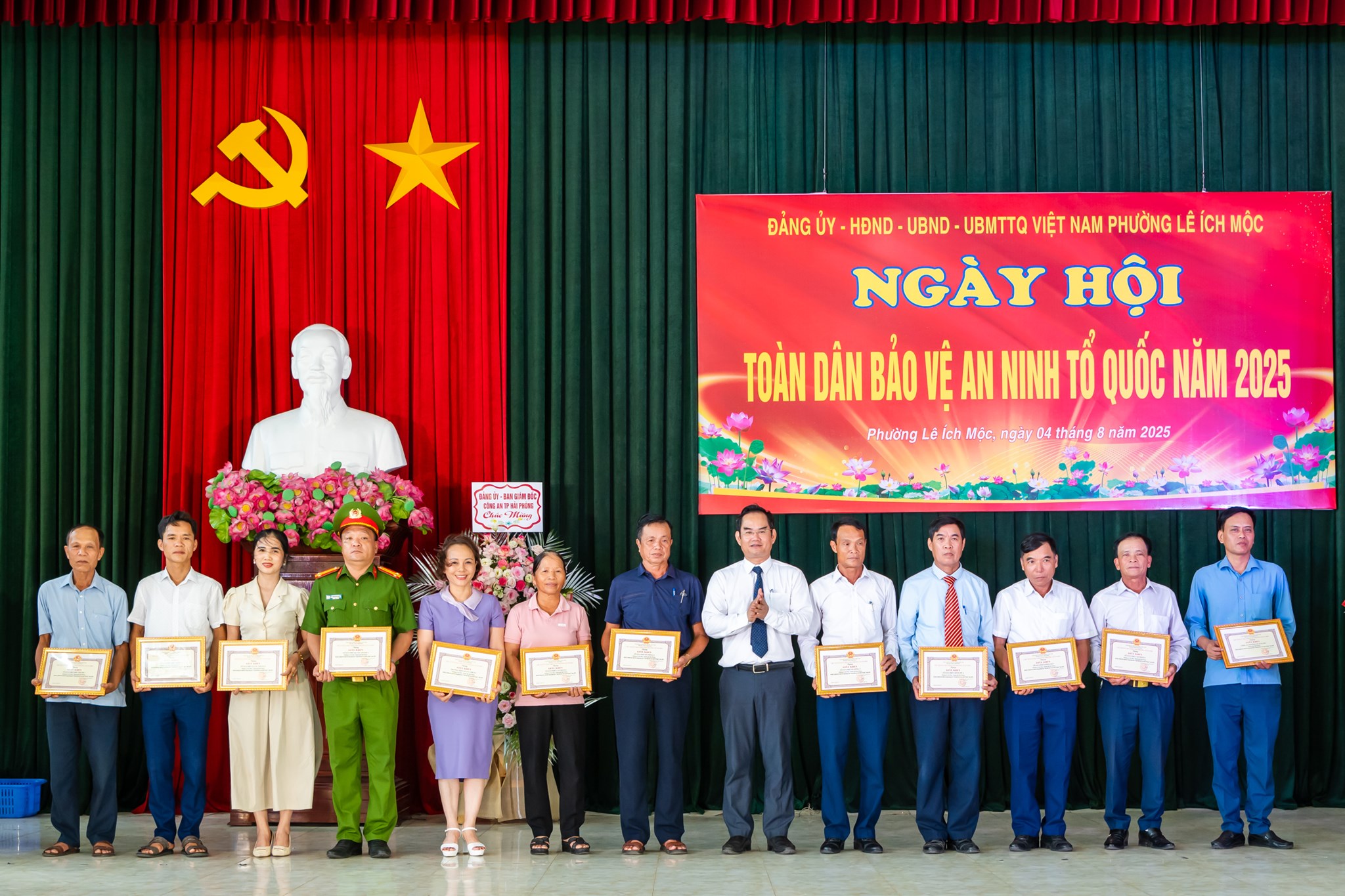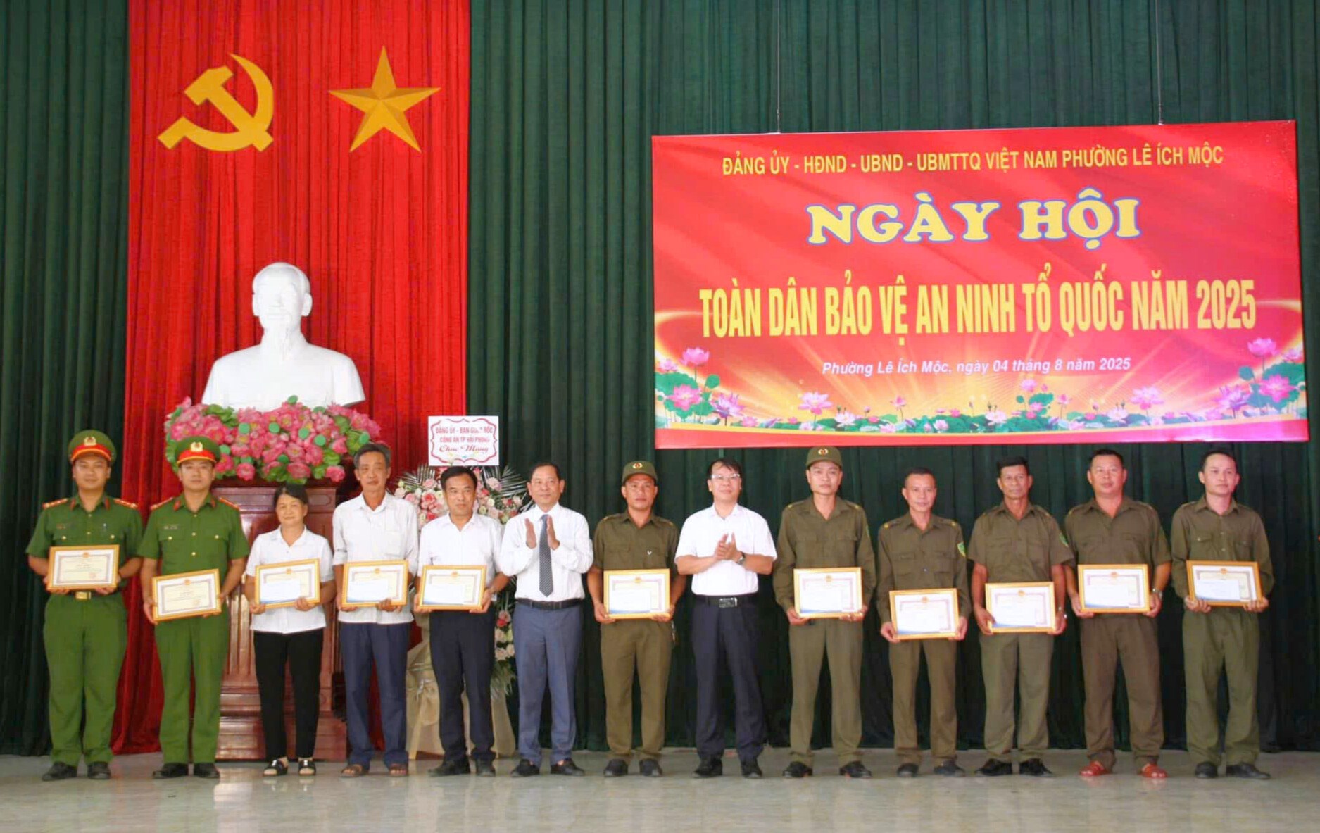 Dịp này, Chủ tịch UBND phường Lê Ích Mộc quyết định trao giấy khen tặng 12 tập thể và 11 cá nhân có thành tích xuất sắc trong phong trào Toàn dân bảo vệ ANTQ năm 2025.