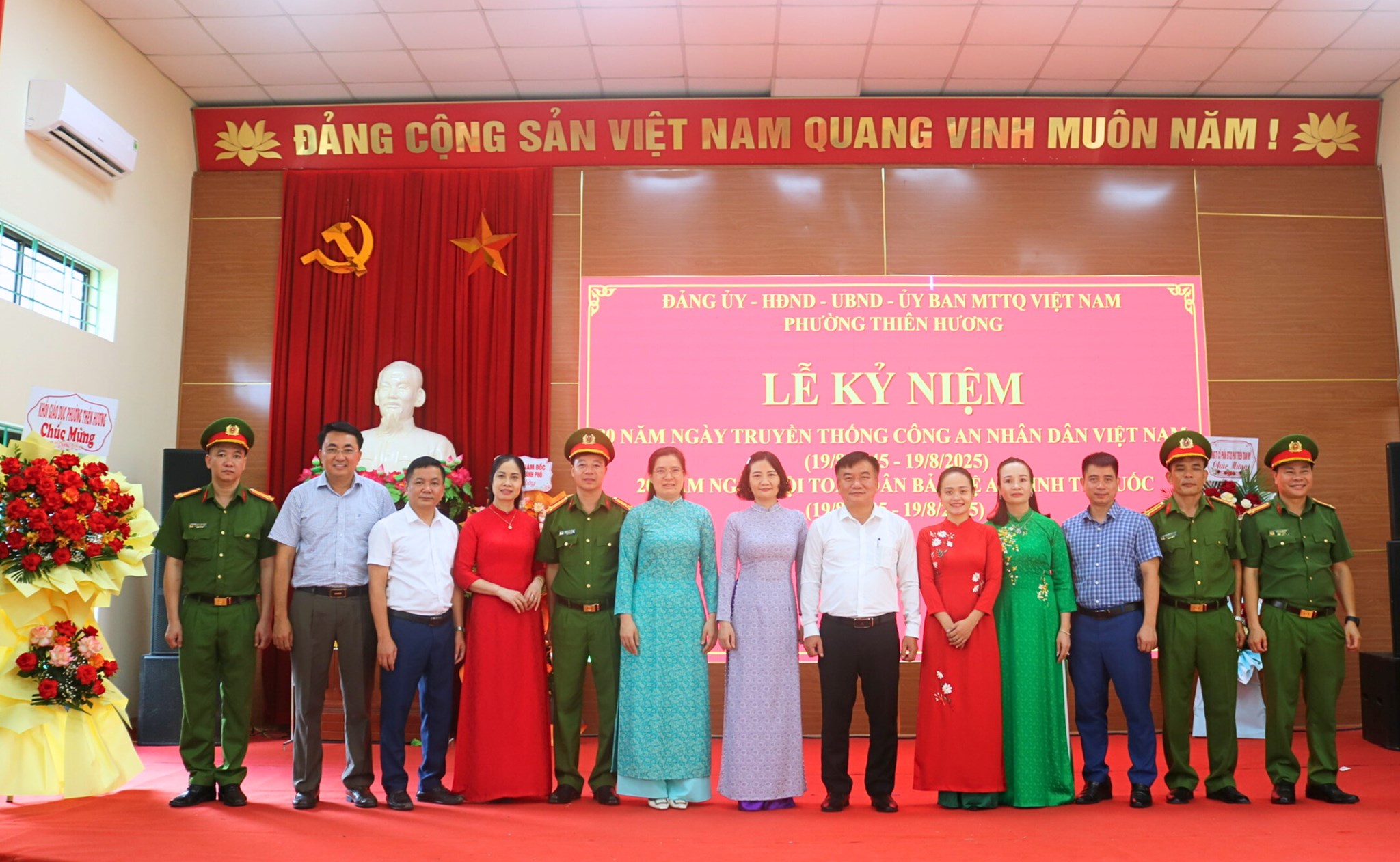 Sáng 9/8/2025, Đảng ủy - HĐND - UBND - Uỷ ban Mặt trận Tổ quốc Việt Nam phường Thiên Hương long trọng tổ chức Lễ kỷ niệm 80 năm ngày truyền thống Công an nhân dân (19/8/1945-19/8/2025) và 20 năm “Ngày hội toàn dân bảo vệ an ninh Tổ quốc” (19/8/2005-19/8/2025).