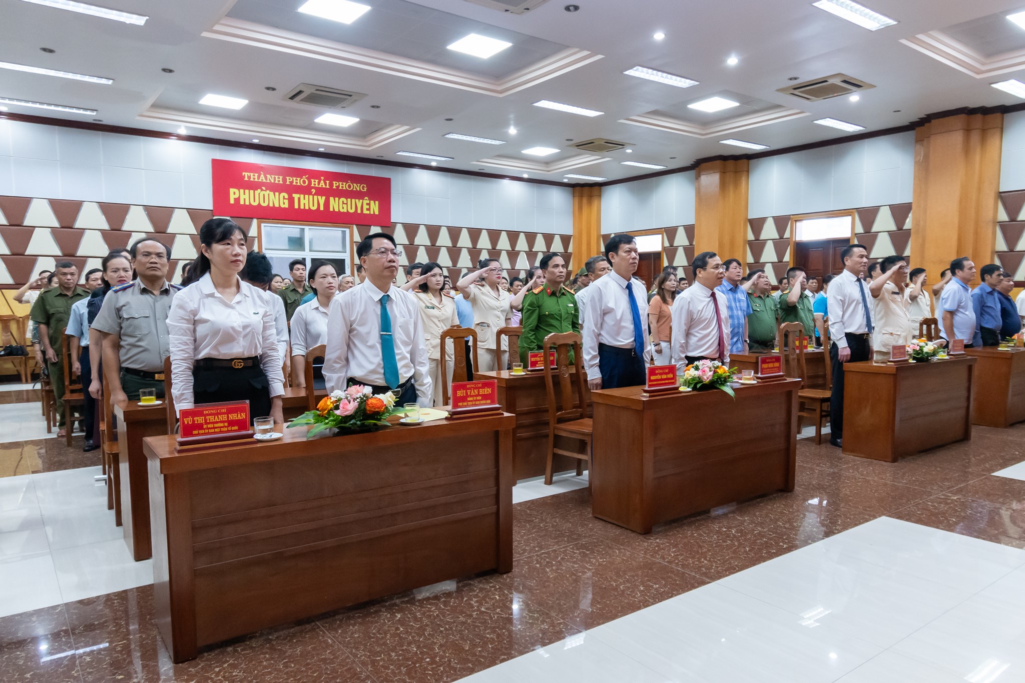 Sáng 15/8/2025, trong không khí phấn khởi của toàn Đảng, toàn dân, toàn quân thi đua lập thành tích chào mừng Kỷ niệm 80 năm Cách mạng tháng Tám và Quốc khánh nước Cộng hoà xã hội chủ nghĩa Việt Nam 2/9, Đảng ủy - HĐND - UBND - Uỷ ban MTTQVN phường Thủy Nguyên long trọng tổ chức Lễ kỷ niệm 80 năm ngày truyền thống Công an nhân dân (19/8/1945-19/8/2025) và 20 năm Ngày hội “Toàn dân bảo vệ an ninh Tổ quốc (ANTQ)” (19/8/2005-19/8/2025). Dự lễ có các đồng chí Uỷ viên Ban thường vụ, Ban Chấp hành Đảng bộ phường, các ban ngành đoàn thể và đông đảo nhân dân trên địa bàn.