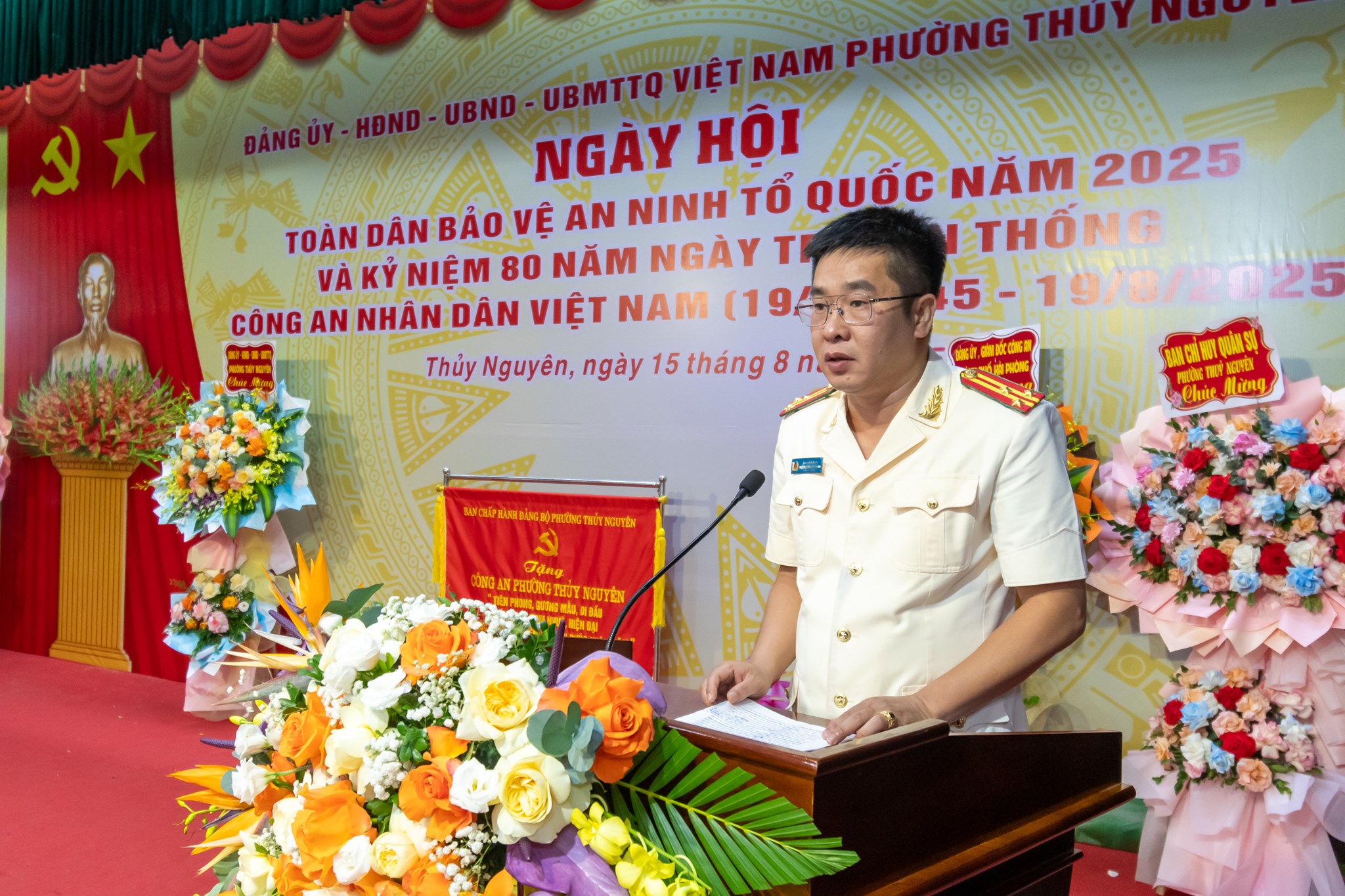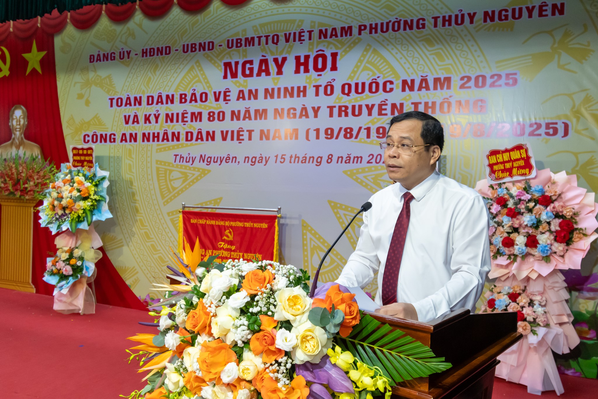 Phát biểu chỉ đạo tại Ngày hội, đồng chí Phạm Hưng Hùng, Ủy viên Thành ủy, Bí thư Đảng ủy, Chủ tịch HĐND phường Thuỷ Nguyên ghi nhận và biểu dương, đánh giá cao sự nỗ lực, những kết quả tích cực của cả hệ thống chính trị và toàn dân phường Thuỷ Nguyên đạt được trong phong trào “Toàn dân bảo vệ ANTQ”. Đặc biệt là Công an phường Thủy Nguyên đã không ngừng nỗ lực, rèn luyện và trưởng thành, phát huy truyền thống anh hùng, luôn hoàn thành xuất sắc nhiệm vụ được giao.