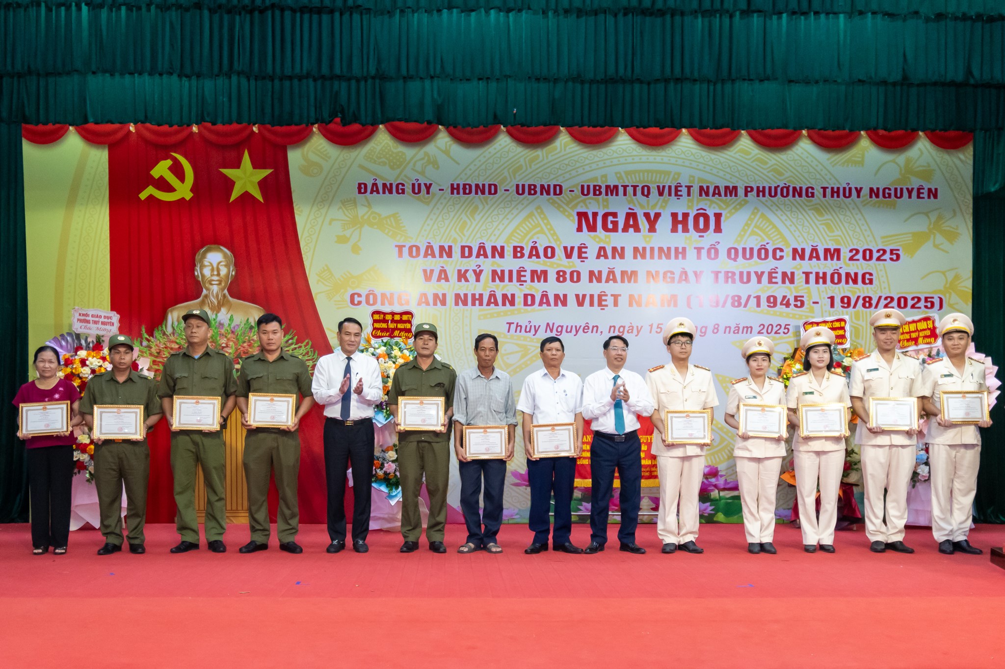 Nhân dịp này, Chủ tịch UBND phường Thuỷ Nguyên tặng giấy khen cho 13 tập thể và 23 cá nhân có thành tích xuất sắc trong phong trào “Toàn dân bảo vệ ANTQ”.