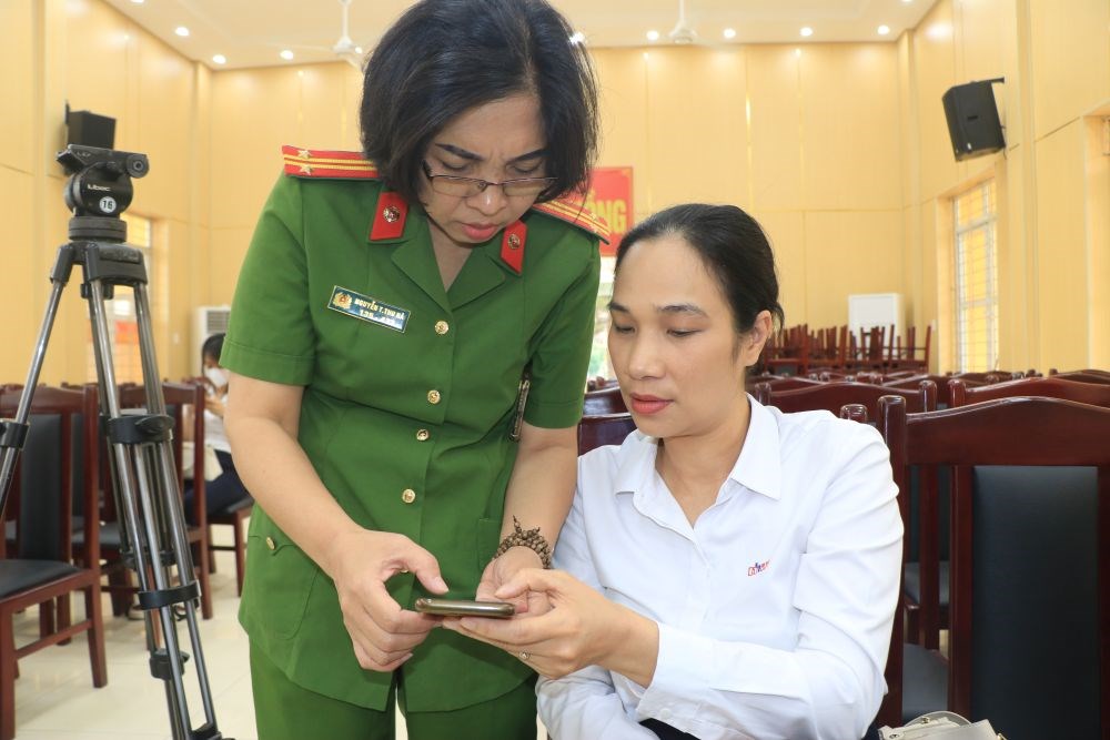 Phòng Cảnh sát QLHC về TTXH, hướng dẫn cán bộ, công nhân các doanh nghiệp trong KCN Nhật Bản các bước tham gia góp ý đối với dự thảo sửa đổi, bổ sung Hiến pháp năm 2013 trên ứng dụng VNeID