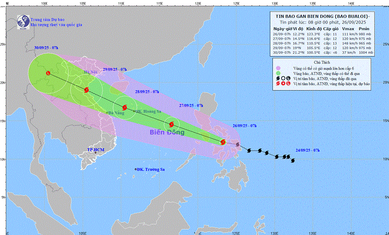 Hướng di chuyển của bão số 10