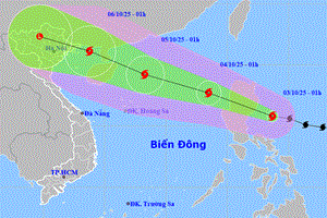 Dự báo 13h00’ ngày 04/10/2025 bão di chuyển theo hướng Tây Tây Bắc với tốc độ khoảng 25km/h đi vào Biển Đông và có khả năng mạnh mẽ hơn, cường độ gió cấp 11-12 giật cấp 15; 13h00’ ngày 05/10/2025 bão tiếp tục di chuyển theo hướng Tây Tây Bắc, tốc độ 20-25km/h, trên vùng biển phía Nam bán đảo Lôi Châu (Trung Quốc), cách Móng Cái (Quản Ninh) khoảng 330 km về phía Đông Nam, cường độ gió cấp 12 giật cấp 15. Cấp độ rủi ro thiên tai: cấp 3; 13h00’ ngày 06/10/2025 bão tiếp tục di chuyển theo hướng Tây Tây Bắc, tốc độ 25km/h, đi vào khu vực Bắc Bộ và suy yếu dần. Vùng nguy hiểm: phía Bắc vĩ tuyến 18,0 độ; phía Tây Kinh tuyến 112,5 độ. Cấp độ rủi ro thiên tai: cấp 3 (vùng biển phía Tây Bắc khu vực Bắc Biển Đông, khu vực Bắc vịnh Bắc Bộ và ven biển các tỉnh từ Quảng Ninh đến Ninh Bình).