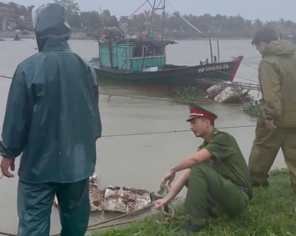 Thiếu tá Phạm Minh Đông - Trưởng Công an xã Kiến Hải, hỗ trợ, kêu gọi ngư dân neo đậu tàu thuyền, vào nơi tránh trú an toàn