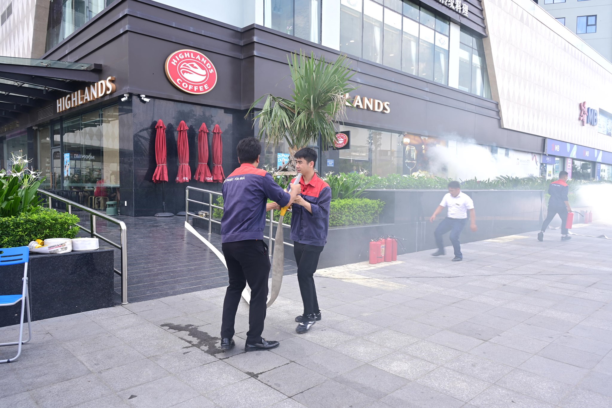 Tình huống giả định là đám cháy xuất phát từ căn hộ tầng 4 tòa nhà Lotus, khói lửa nhanh chóng bùng phát mạnh. Ngay sau khi phát hiện đám cháy, cùng với hệ thống chuông báo cháy được kích hoạt và nhận lệnh của GĐ BQLTN - Chỉ huy chữa cháy tại chỗ, Đội chữa cháy cơ sở đã nhanh chóng sử dụng các phương tiện PCCC tại chỗ để tiếp cận, phong tỏa đám cháy và sơ tán người dân trong chung cư, đồng thời sơ tán tài sản.