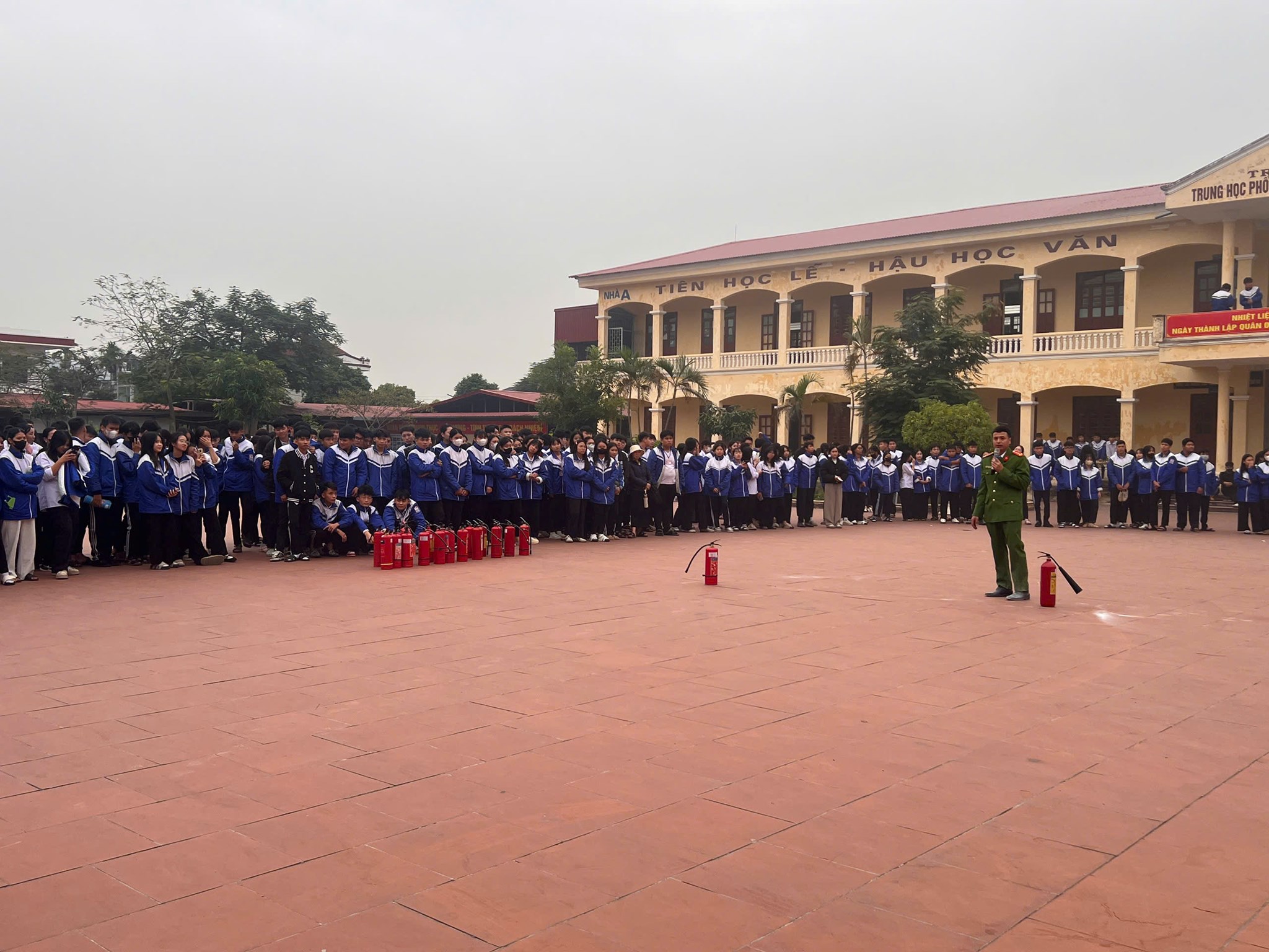 Sau phần tuyên truyền, nhà trường phối hợp cùng lực lượng chức năng tổ chức thực tập tình huống giả định: xử lý đám cháy phát sinh tại dãy nhà học tập. Buổi diễn tập diễn ra an toàn tuyệt đối về người và tài sản, góp phần nâng cao ý thức, kỹ năng ứng phó sự cố cho thầy và trò.