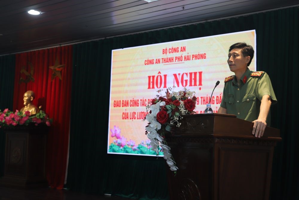 Đại tá Phạm Viết Dũng- Phó giám đốc Công an thành phố phát biểu chỉ đạo hội nghị