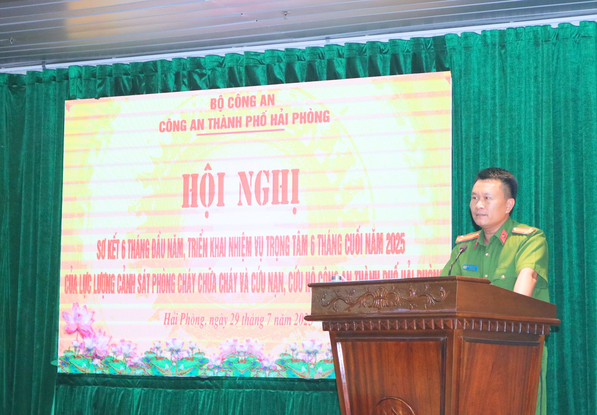 Thượng tá Phạm Đức Thuận, Phó Trưởng Phòng Cảnh sát PCCC và CNCH - CATP báo cáo kết quả công tác 6 tháng đầu năm 2025