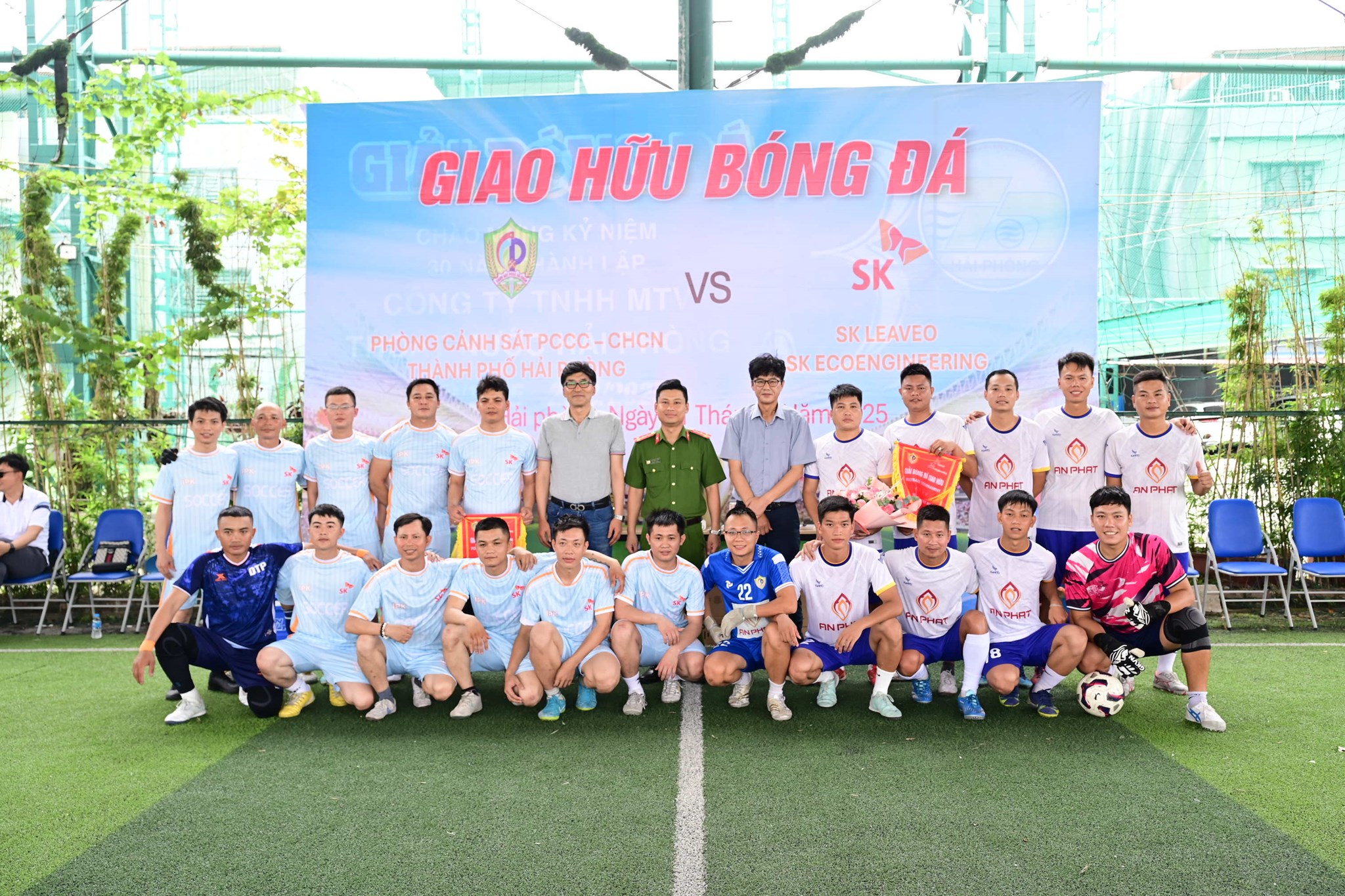 Vừa qua, tại sân bóng đá Trung tâm Thể thao Đằng Lâm (quận Hải An), Đội bóng đá nam Phòng Cảnh sát PCCC và CNCH (Công an thành phố) và Tập đoàn SK, Hàn Quốc (Dự án nhà máy sản xuất vật liệu phân hủy sinh học) tổ chức trận bóng đá giao hữu.