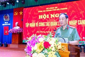 Đại tá Bùi Mạnh Hùng, Phó Giám đốc CATP phát biểu tại hội nghị