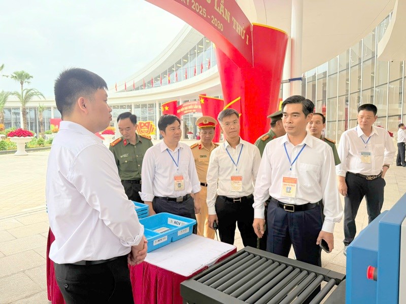 Đại tá Nguyễn Đức Thìn, Phó Giám đốc CATP kiểm tra công tác triển khai kiểm soát người ra vào khu vực tổ chức Đại hội