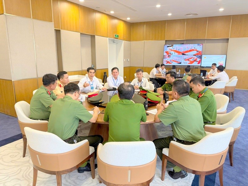 Đại tá Nguyễn Đức Thìn, Phó Giám đốc CATP chỉ đạo công tác bảo vệ ANTT tại Trung tâm chỉ huy bảo vệ ANTT đặt tại Trung tâm Hội nghị - biểu diễn thành phố