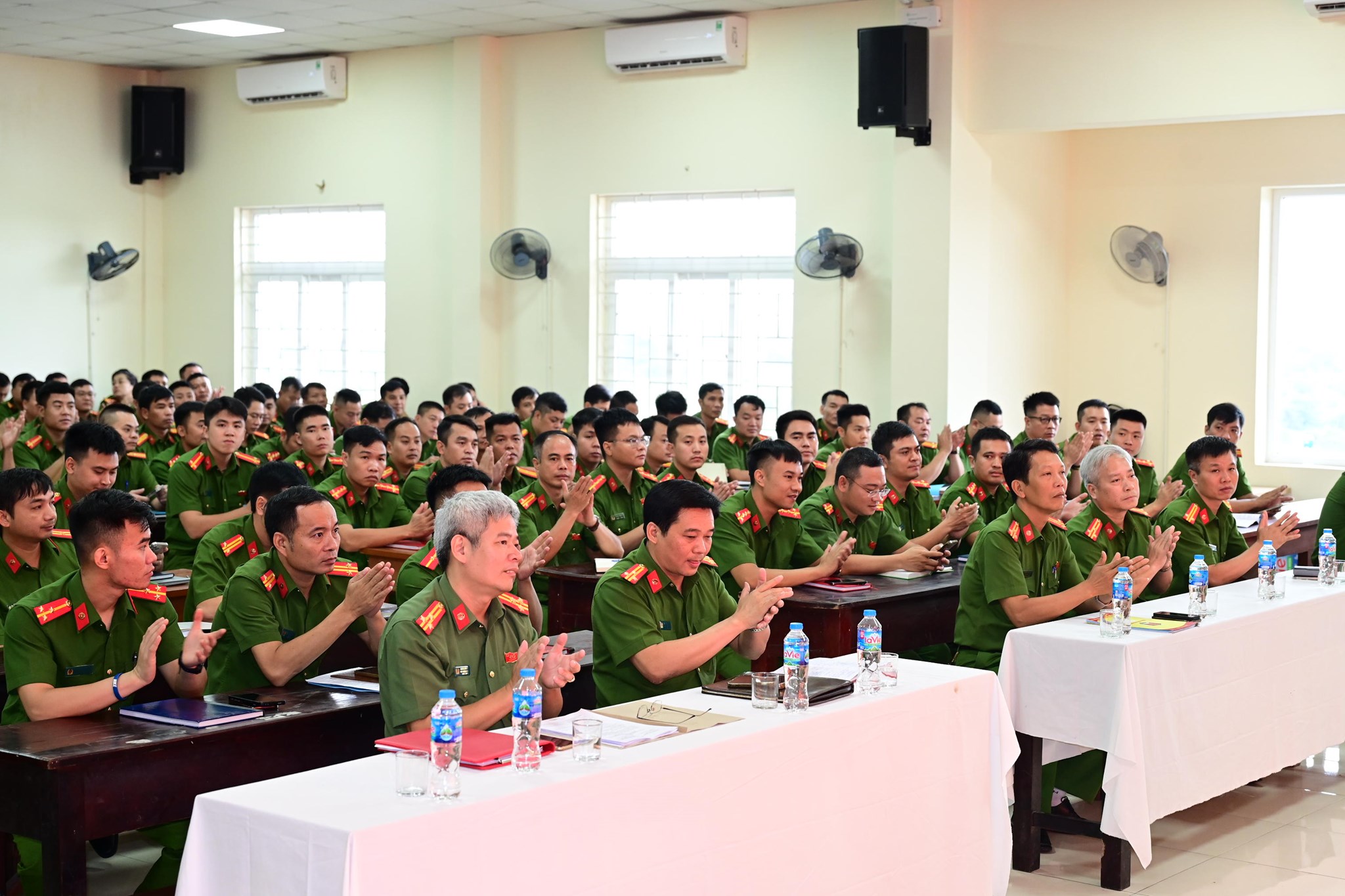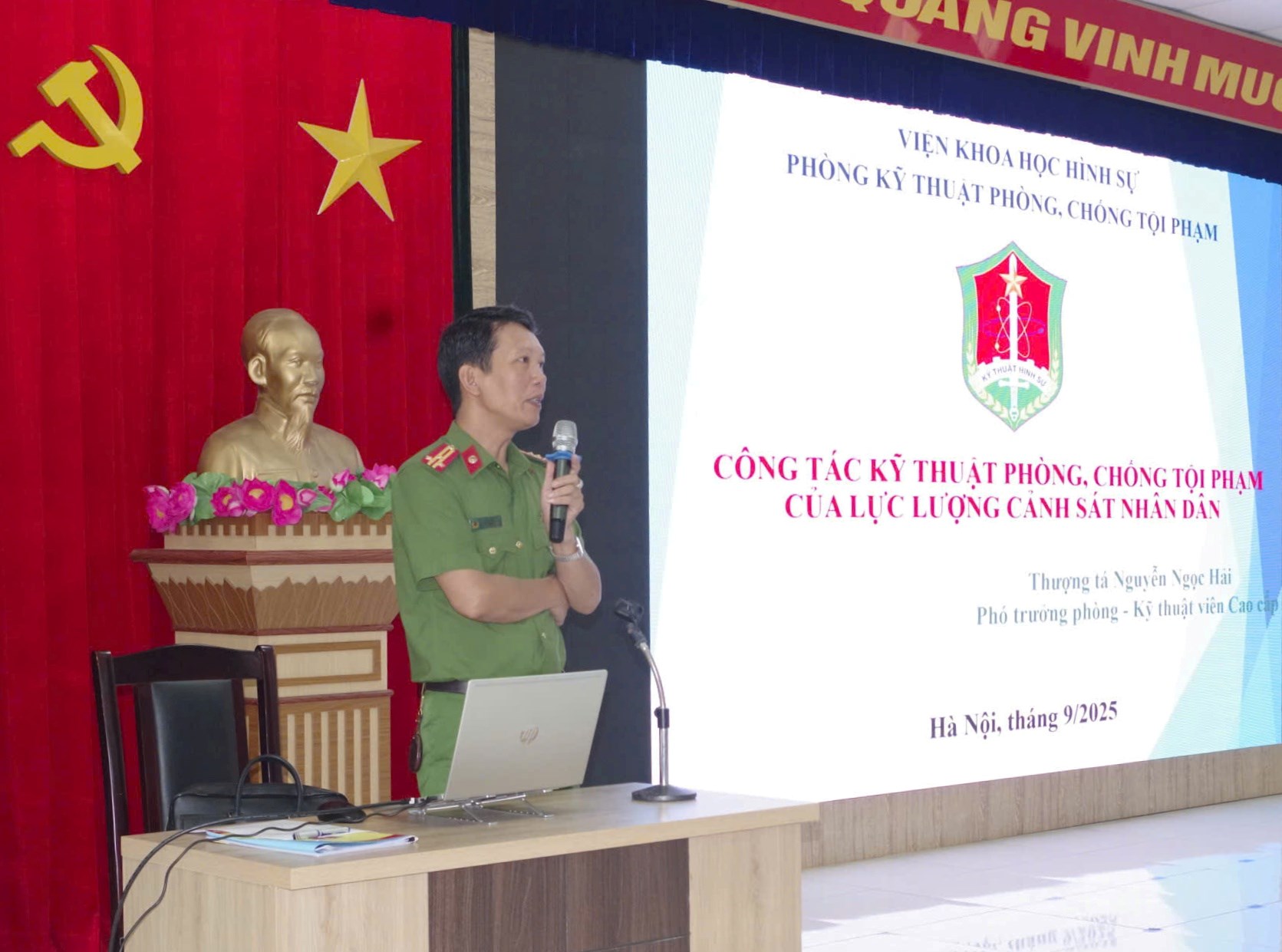 Thượng tá Nguyễn Ngọc Hải - Phó phòng 7, Cục Kỹ thuật hình sự, Bộ Công an giảng bài lớp tập huấn