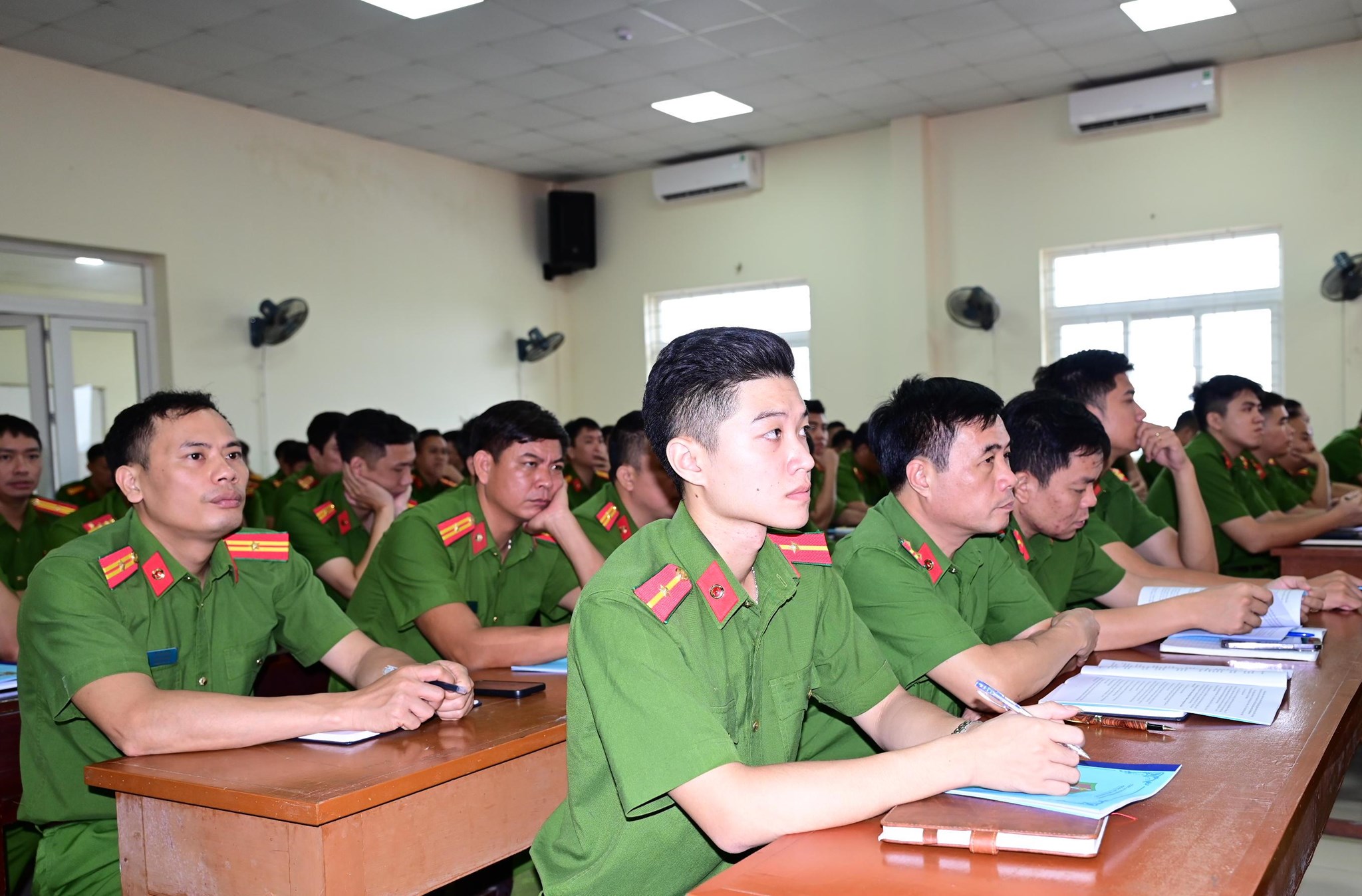 Phát biểu khai mạc lớp bồi dưỡng nghiệp vụ kỹ thuật hình sự, Thượng tá Quách Tiến Hải - Trưởng phòng Kỹ thuật hình sự quán triệt về nội dung, tầm quan trọng của nghiệp vụ kỹ thuật hình sự.