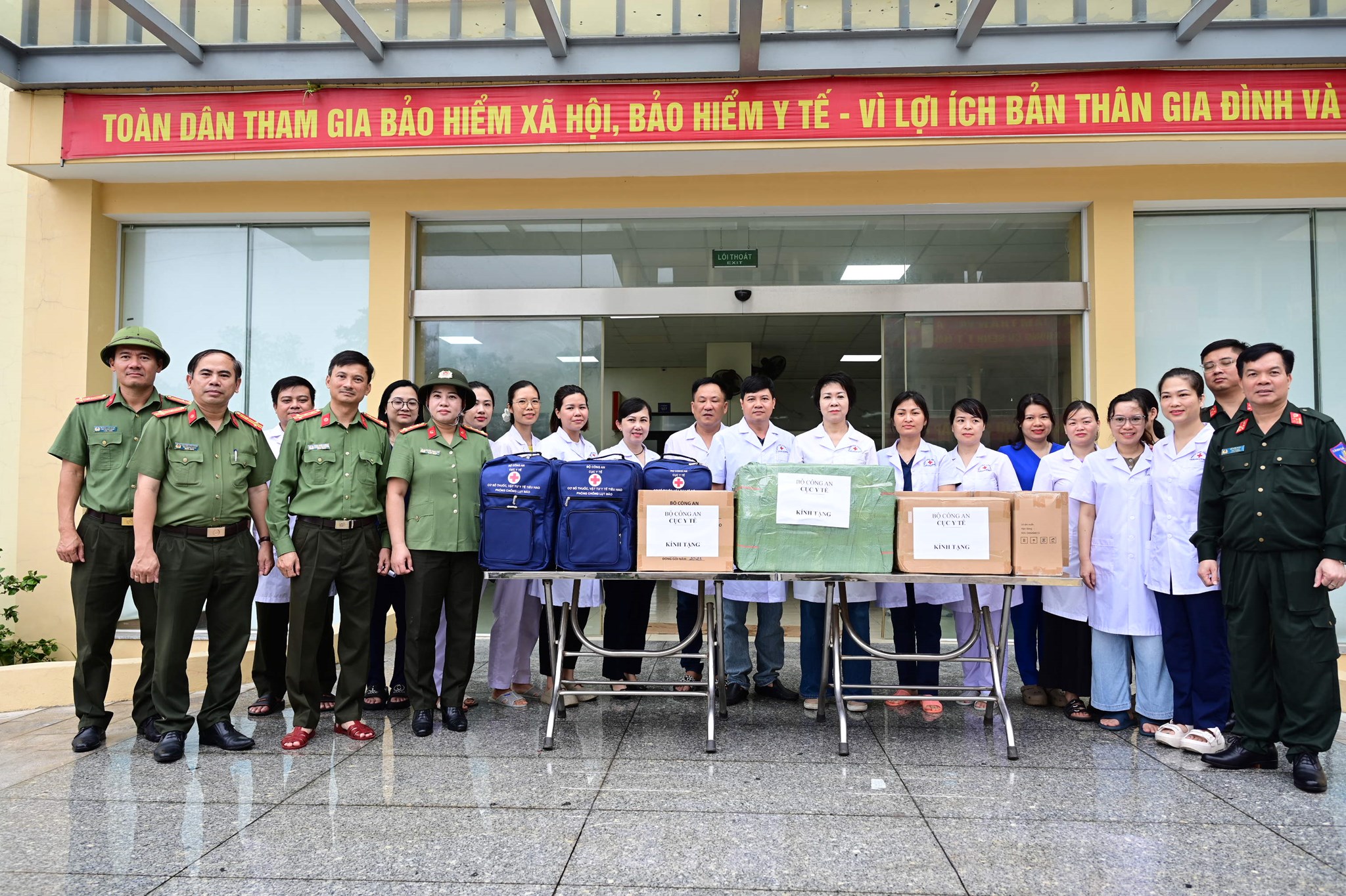 Tại Bệnh viện Công an thành phố Hải Phòng, Cục Y tế - Đoàn công tác của Bộ Công an trao tặng 10 cơ số thuốc, cơ số dụng cụ như vật tư tiêu hao trong công tác phòng chống lụt bão…