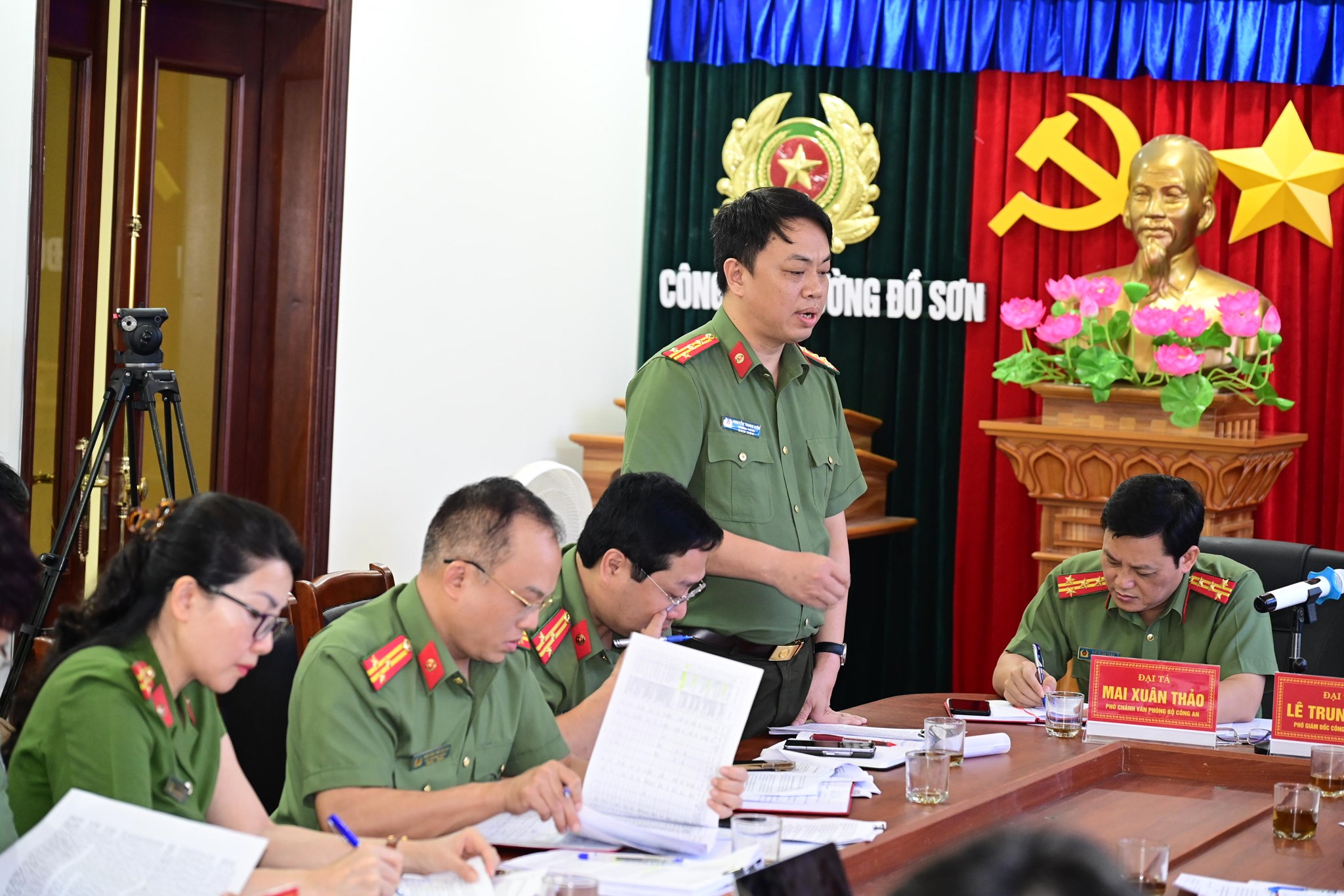Trung tá Phan Văn Thắng, Trưởng CAP Đồ Sơn báo cáo tại buổi làm việc
