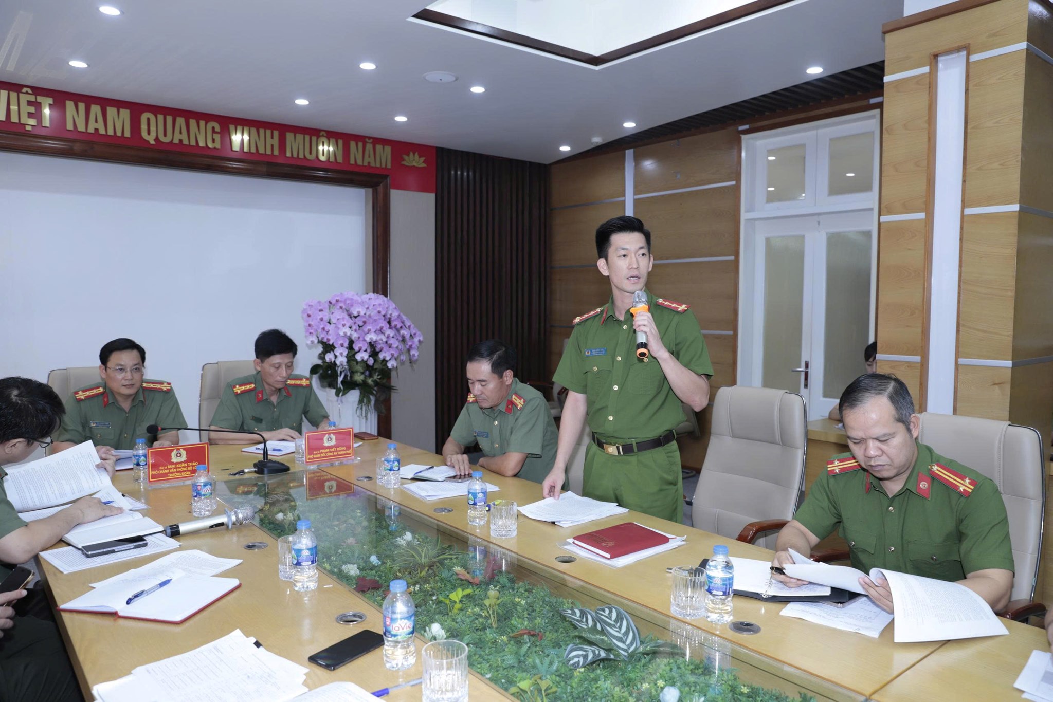 Đại tá Mai Xuân Thảo, Phó Chánh Văn phòng Bộ Công an – Trưởng Đoàn công tác phát biểu tại buổi làm việc với CAP Đồ Sơn